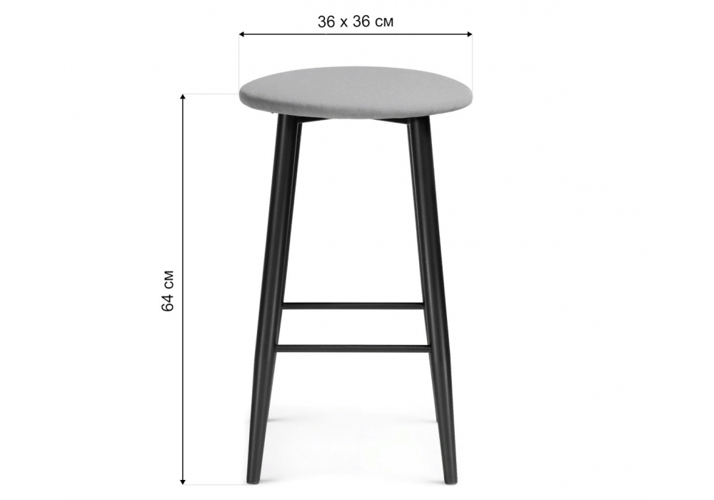 Материал каркаса - Металл; Материал сиденья - Велюр; Материал ножек - Металл; Материал обивки - Велюр; Цвет каркаса - Черный; Цвет сиденья - Черный; Цвет ножек - Черный; Цвет обивки - Черный; Ширина - 36; Глубина - 36; Высота - 64; Ширина сиденья - 36; Глубина сиденья - 36; Высота сиденья - 64;