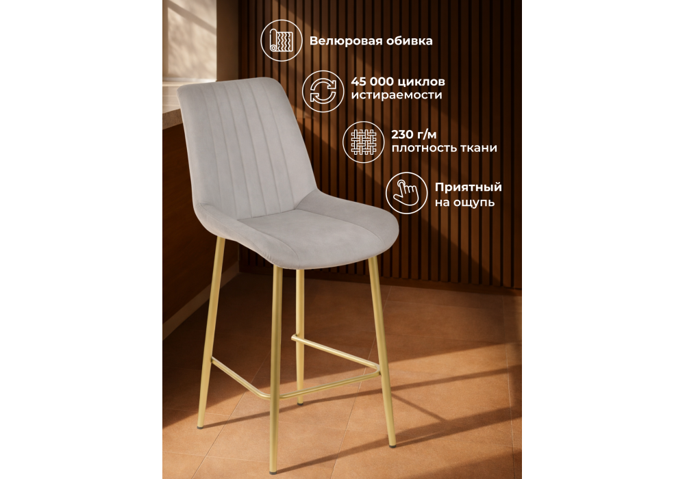 Материал каркаса - металл; Материал сиденья - велюр; Материал обивки - велюр; Ширина - 49; Глубина - 57; Высота - 102; Ширина сиденья - 47; Глубина сиденья - 41; Высота сиденья - 63;