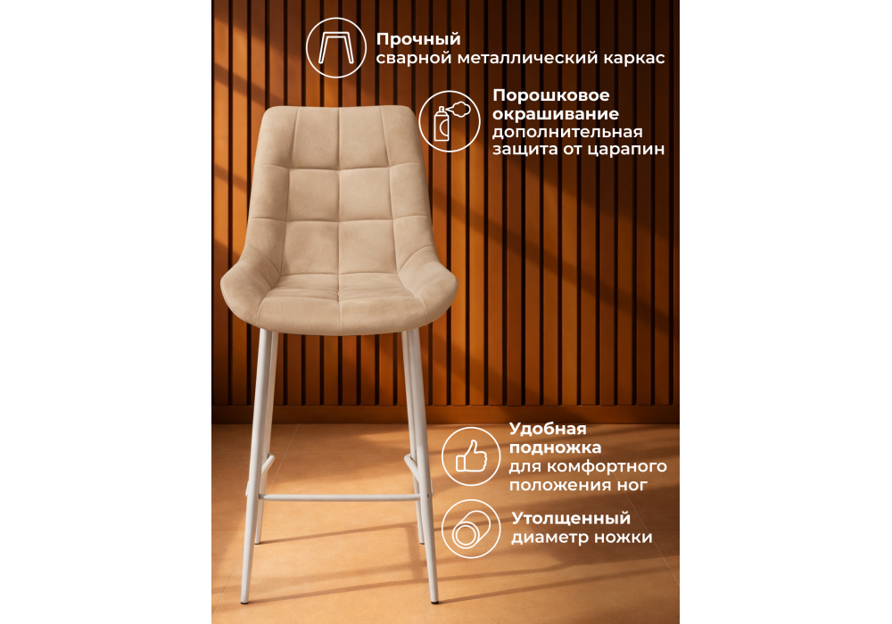 Материал каркаса - металл; Материал сиденья - велюр; Материал обивки - велюр; Цвет ножек - серый; Ширина - 50; Глубина - 58; Высота - 99; Ширина сиденья - 46; Глубина сиденья - 41; Высота сиденья - 63;