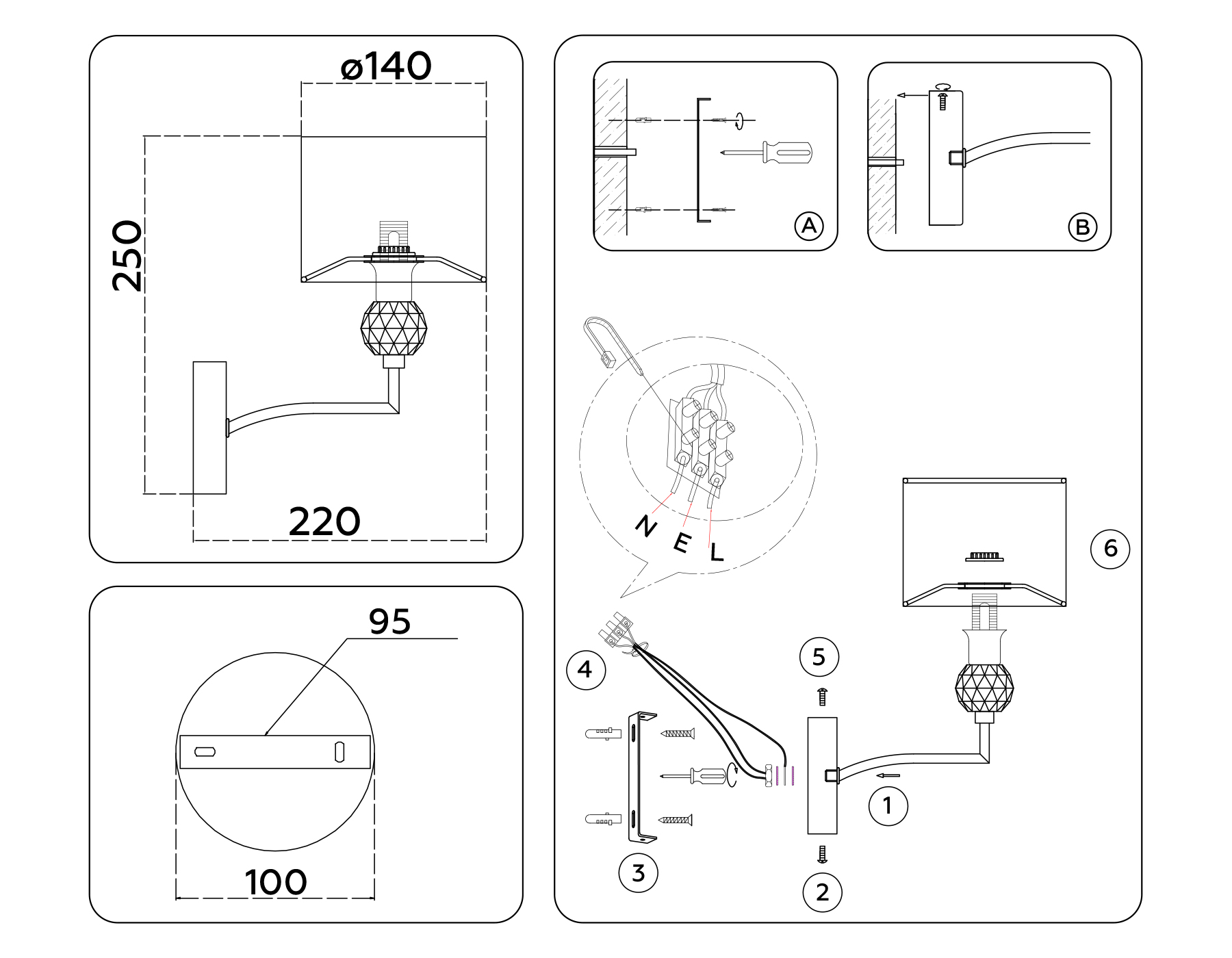 Настенные, С абажуром?Способ крепления и установки люстры.