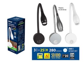 Бра (UL-00004240) Uniel ULT-F22-3W/4000K IP20 Black