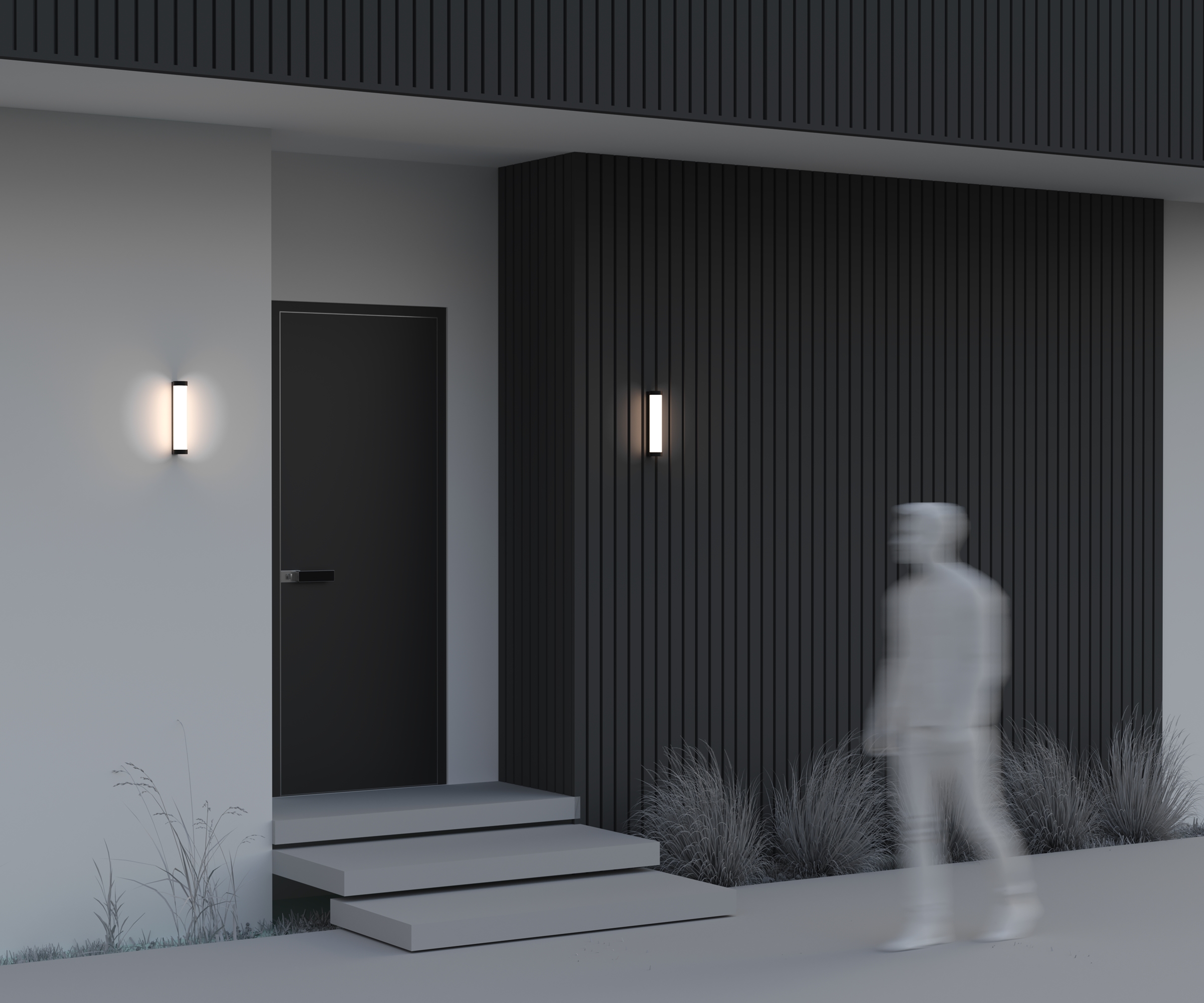 Настенные светильники бра. Корпус — алюминий, цвет — глубокий черный. Вертикальная конструкция с двусторонним световым потоком. LED-технология, теплый свет 3000К. Модели мощностью 12 Вт и 16 Вт. Защита от влаги и пыли — IP54. Подходящее решение для создания атмосферного освещения фасадов и внутренних помещений.