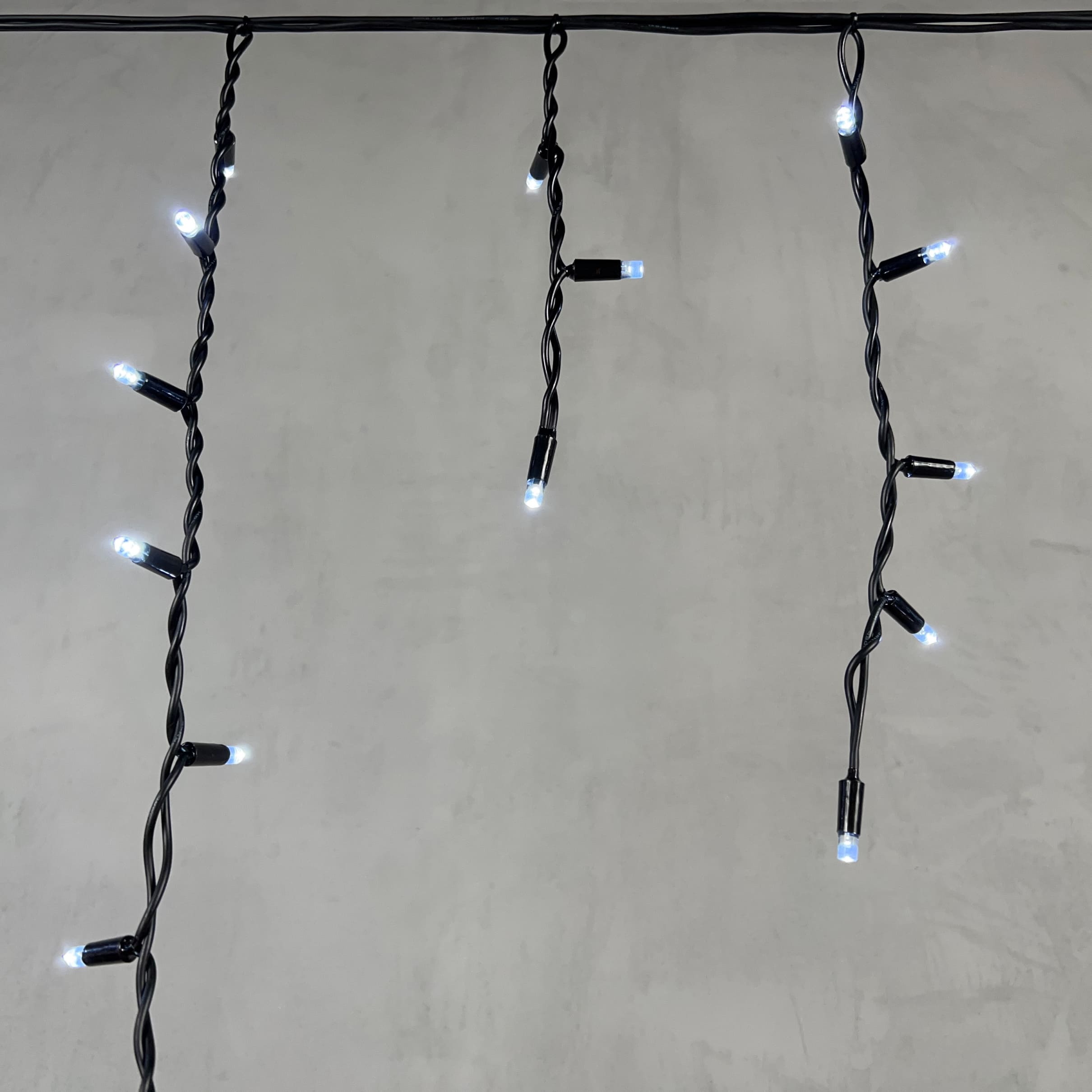 Гирлянда Бахрома 3, 1 x 0, 5 м Белая 220В, 120 LED, Провод Черный Каучук, IP65 LTC LL120-1-2W в Магнитогорске