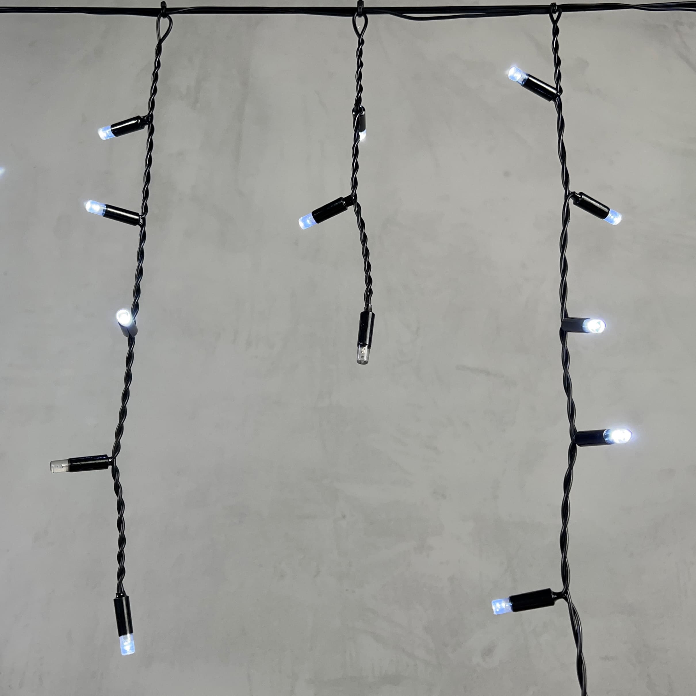 Гирлянда Бахрома с Колпачком 3, 1 x 0, 5 м Белая с Мерцанием Белого Диода 220В, 120 LED, Провод Черный ПВХ, IP65 LTC PIL120BLWCAP-11-2W в Магнитогорске