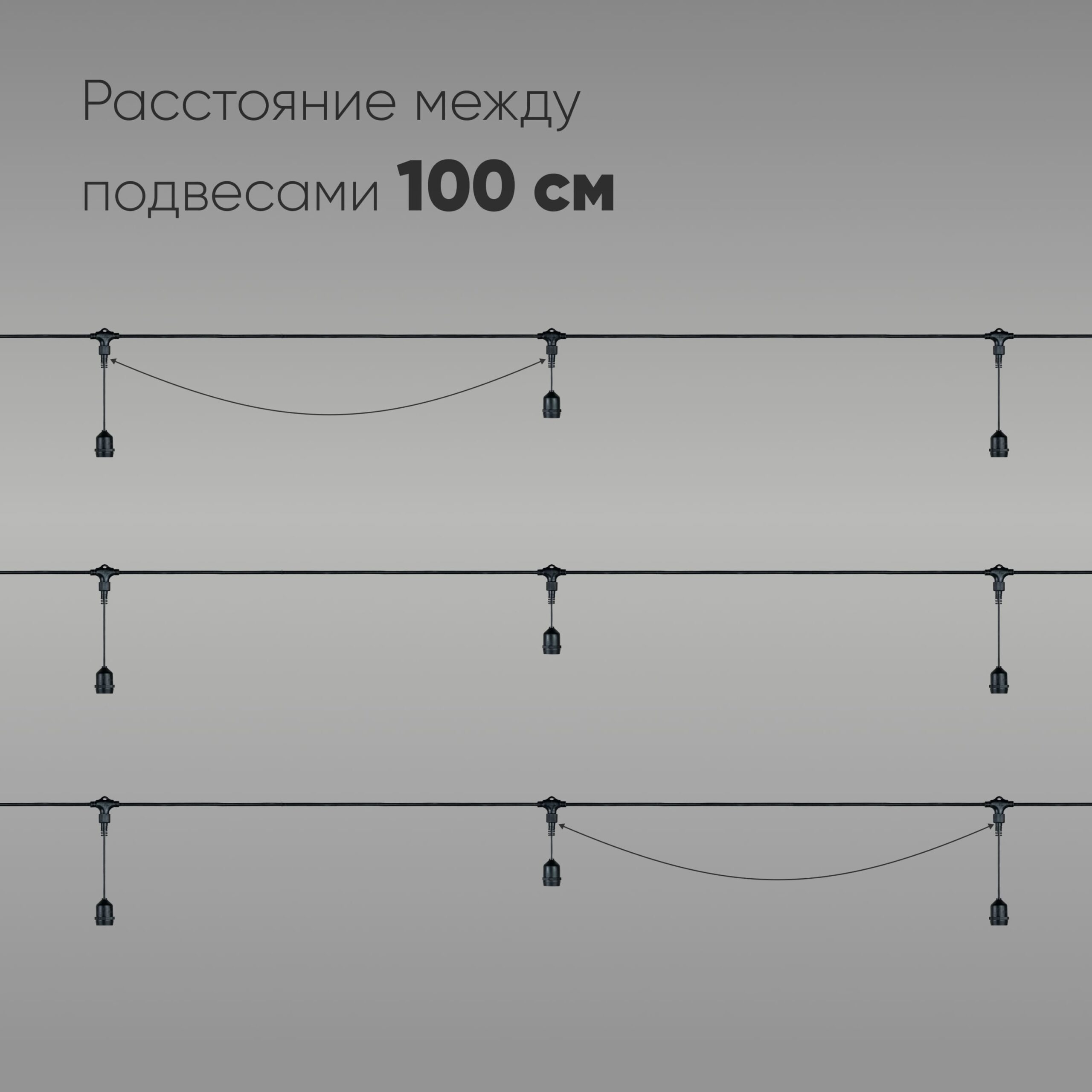 Купить "Белт-Лайт UNIBELT 10м, Провод Черный Каучук, Шаг 100 см, 10 Подвесных Патронов, IP65 LTC UBL10m/10L-1"