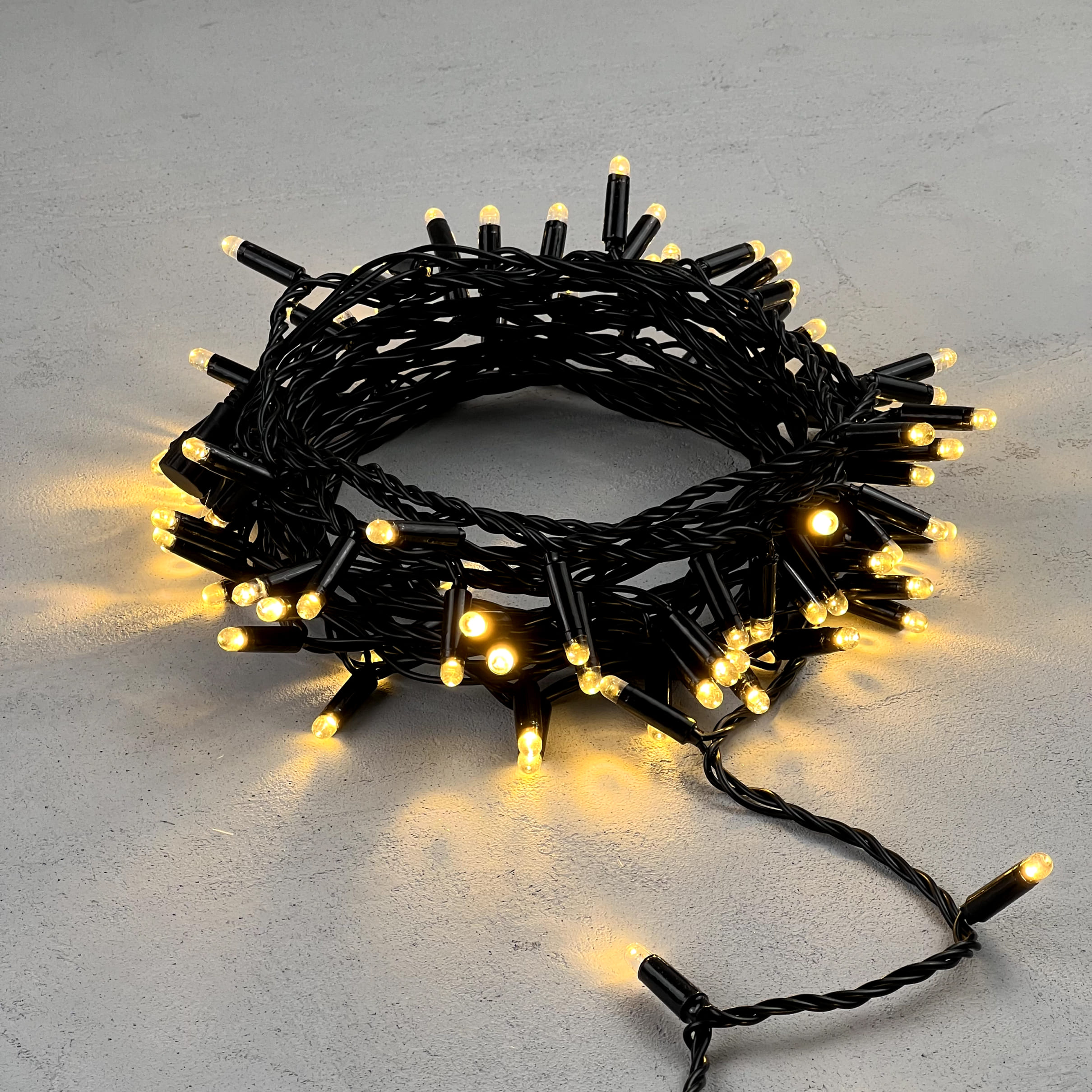 Гирлянда Нить с Колпачком 10м Тепло-Белая 24В, 100 LED, Провод Черный ПВХ, IP65 LTC PST100CAP-11-1WW в Магнитогорске