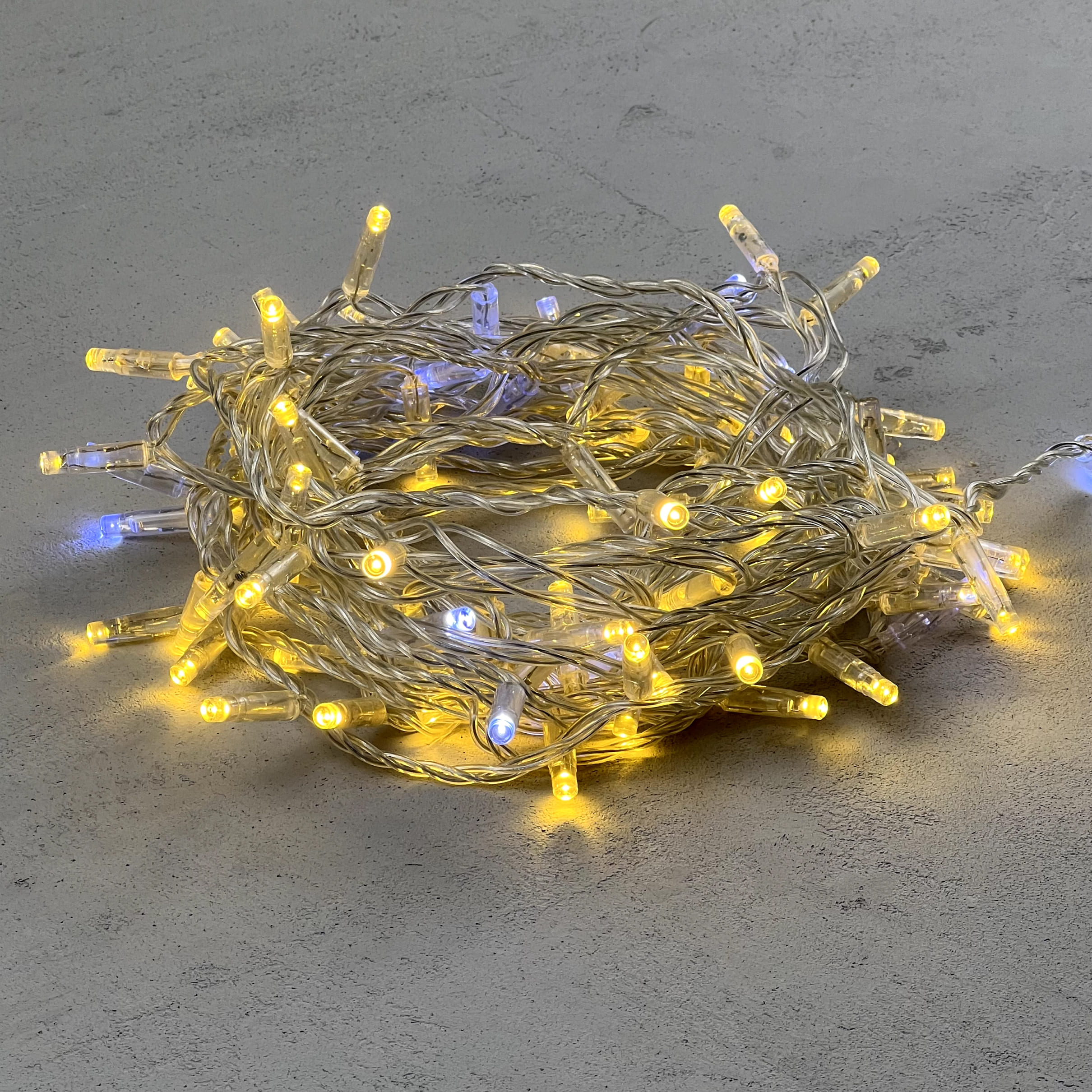 Купить "Гирлянда Нить с Колпачком 10м Золотой с Мерцанием Белого Диода 24В, 100 LED, Провод Прозрачный ПВХ, IP65 LTC PST100BLWCAP-10-1GL"