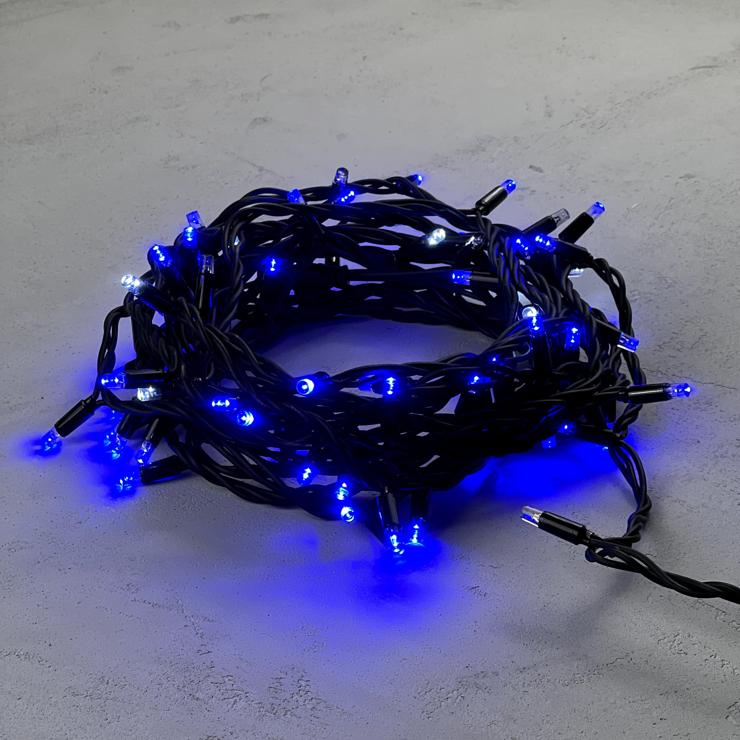 Гирлянда Нить 10м Синяя с Мерцанием Белого Диода 220В, 75 LED, Провод Черный Каучук, IP65 LTC LL75BLW-1-2B в Магнитогорске