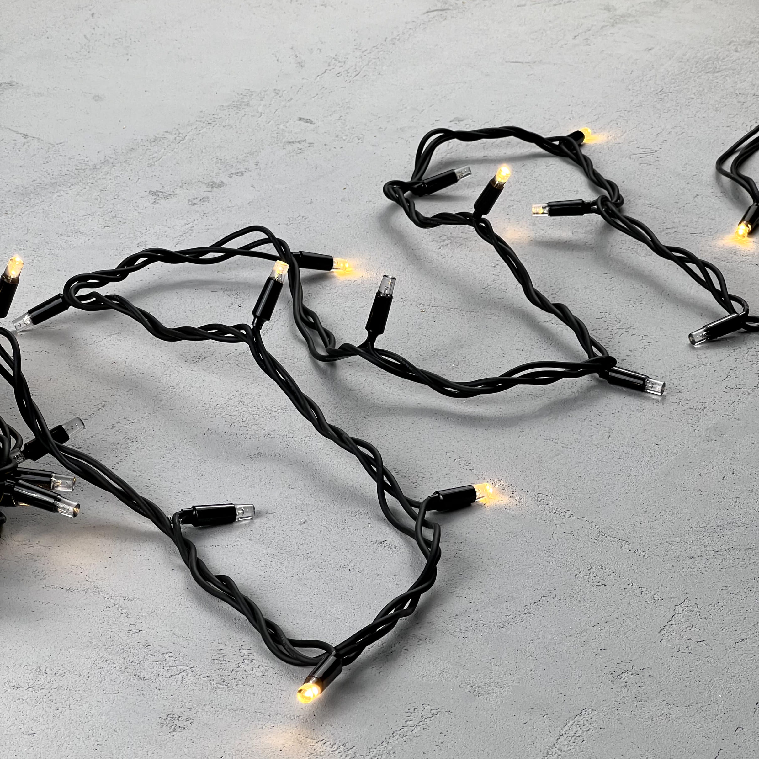 Купить "Гирлянда Нить 10м Тепло-Белая с Мерцанием Каждого Диода 220В, 75 LED, Провод Черный Каучук, IP65 LTC LL75ABL-1-2WW"