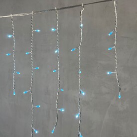 Гирлянда Бахрома на Батарейках 3 х 0,5 м Аква, 100 LED, Провод Прозрачный Силикон, IP65 LTC ECC100-10-8A