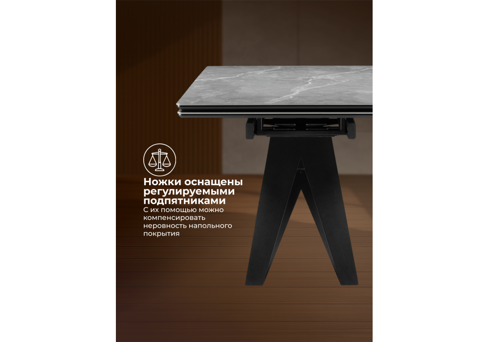 Керамический стол раздвижной Woodville Блэкберн 140(200)х80 серый мрамор larka grey / черный 625933 в Магнитогорске