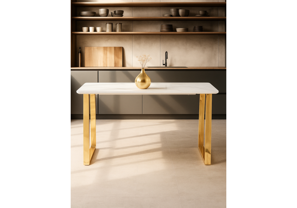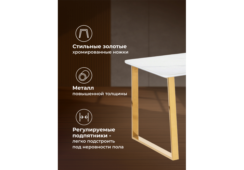 Керамический стол Woodville Селена 2 140х80х77 белый мрамор / золото 571412 в Магнитогорске