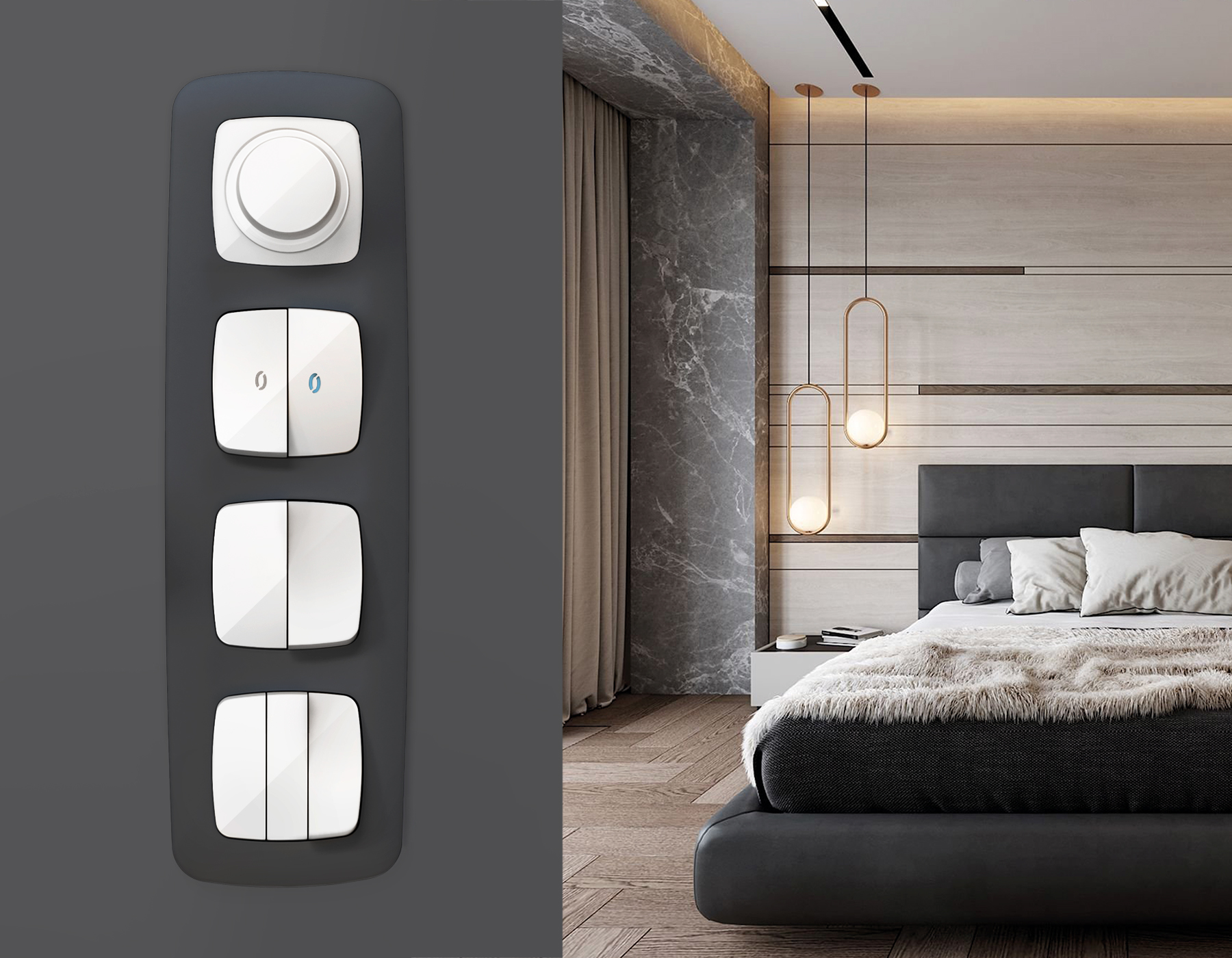 Многогранный ассортимент Ambrella Volt включает в себя механизмы, лицевые панели и рамки, а также комплекты, доступные в различных цветовых решениях. Продукция представлена в модульном исполнении, что позволяет гибко настраивать внешнийвид и функциональность. Вам будет легко заменить лицевую панель, рамку или механизм, найдя идеальное сочетание цветов.