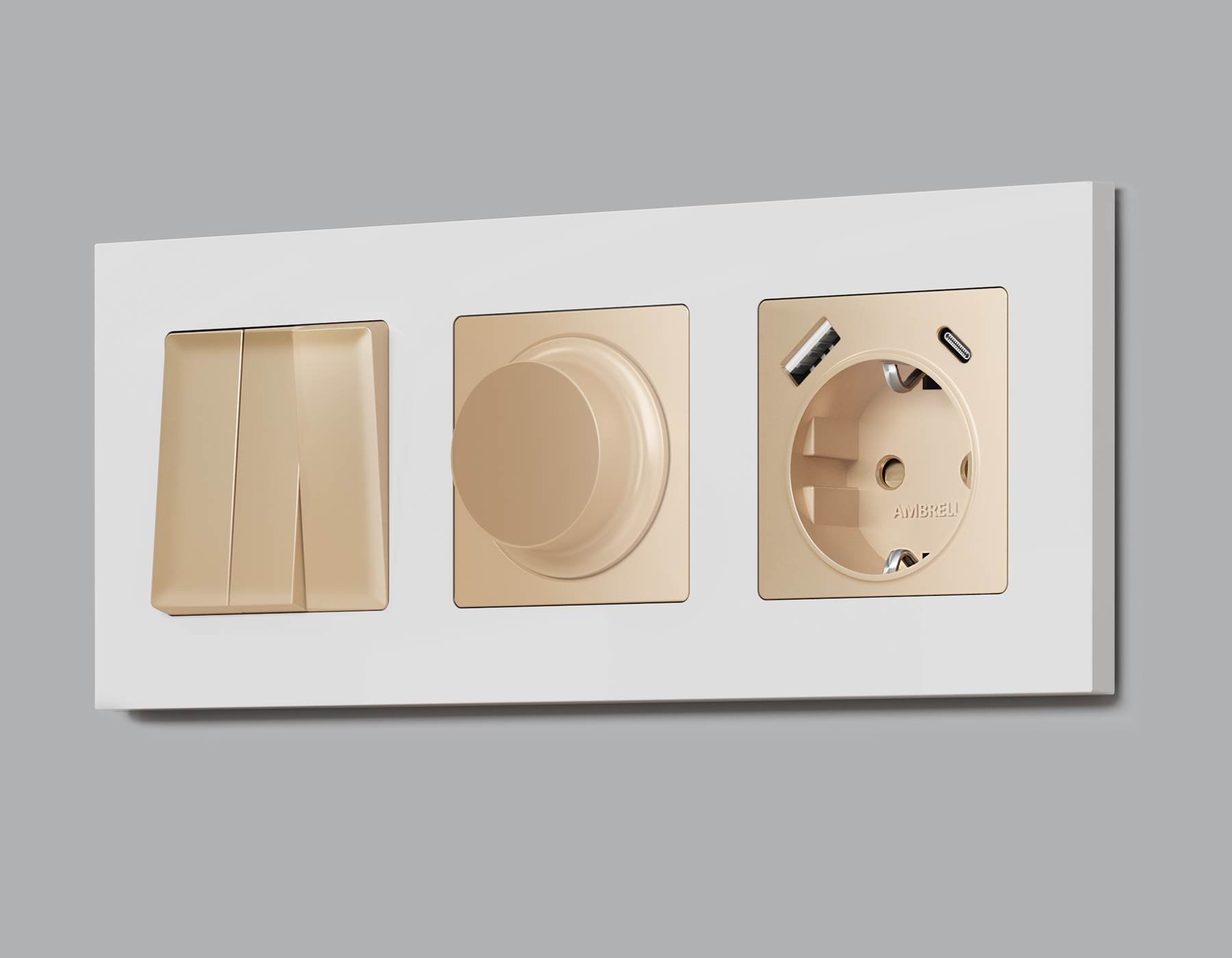 Многогранный ассортимент Ambrella Volt включает в себя механизмы, лицевые панели и рамки, а также комплекты, доступные в различных цветовых решениях. Продукция представлена в модульном исполнении, что позволяет гибко настраивать внешнийвид и функциональность. Вам будет легко заменить лицевую панель, рамку или механизм, найдя идеальное сочетание цветов.