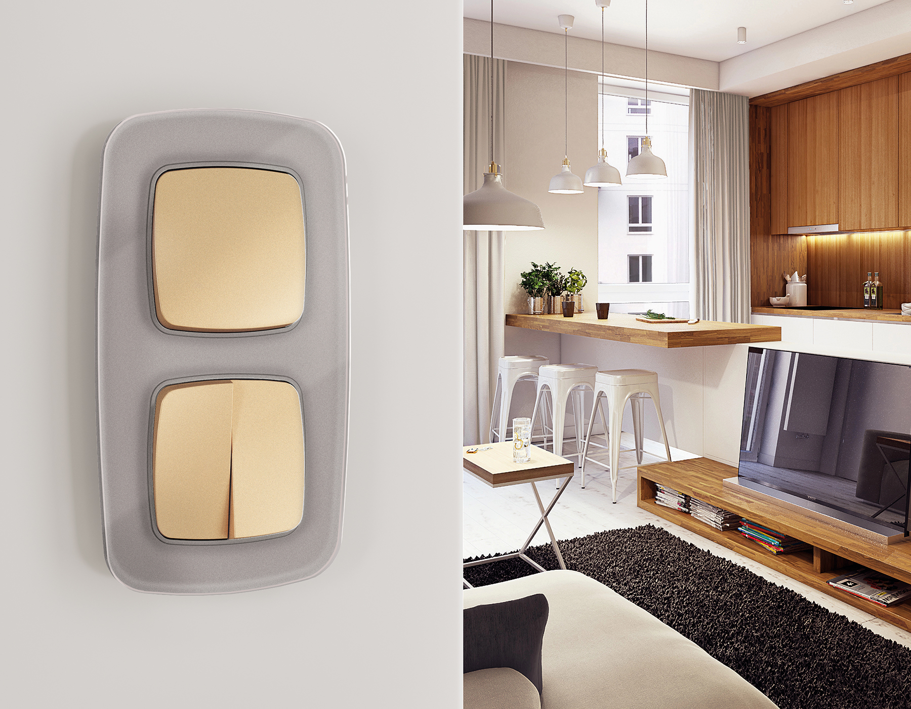 Многогранный ассортимент Ambrella Volt включает в себя механизмы, лицевые панели и рамки, а также комплекты, доступные в различных цветовых решениях. Продукция представлена в модульном исполнении, что позволяет гибко настраивать внешнийвид и функциональность. Вам будет легко заменить лицевую панель, рамку или механизм, найдя идеальное сочетание цветов.