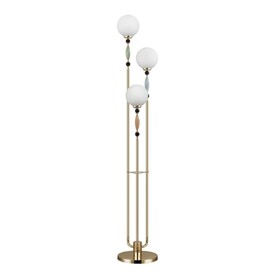 Воздушная линия светильников Palle декорирована керамикой ручной работы. В ней красиво сочетаются гофрированная керамика, металл покрытый золотой гальваникой и матовое белое стекло. Керамический декор выполнен в серых оттенках с акцентной светло-зеленой кисточкой и дополнен стеклянными черными бусинами. Подвесы и люстры имеют возможность регулировки высоты благодаря наборной штанге.