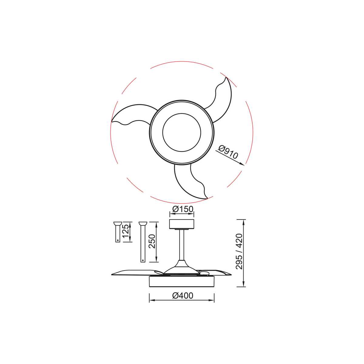 - Диаметр: 910 мм (91 см)
