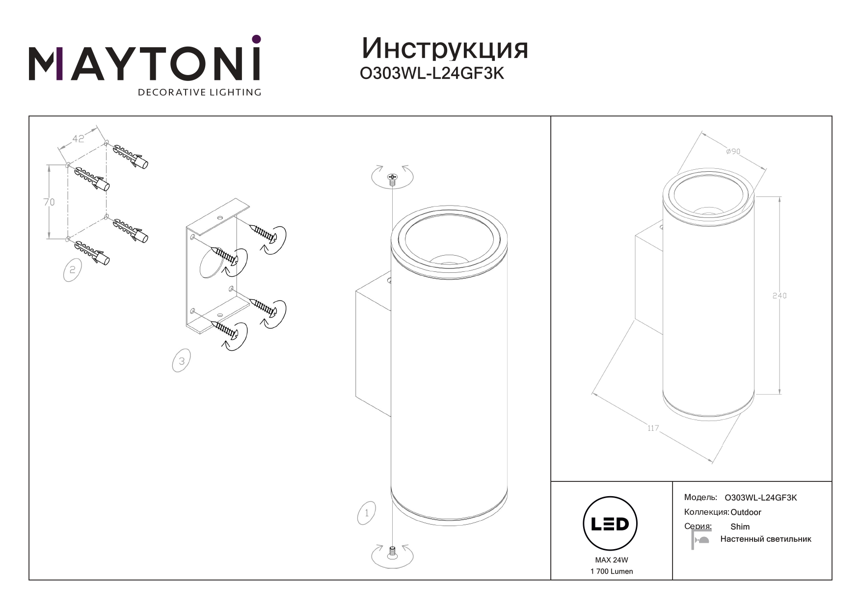 Все характеристики O303WL-L24GF3K