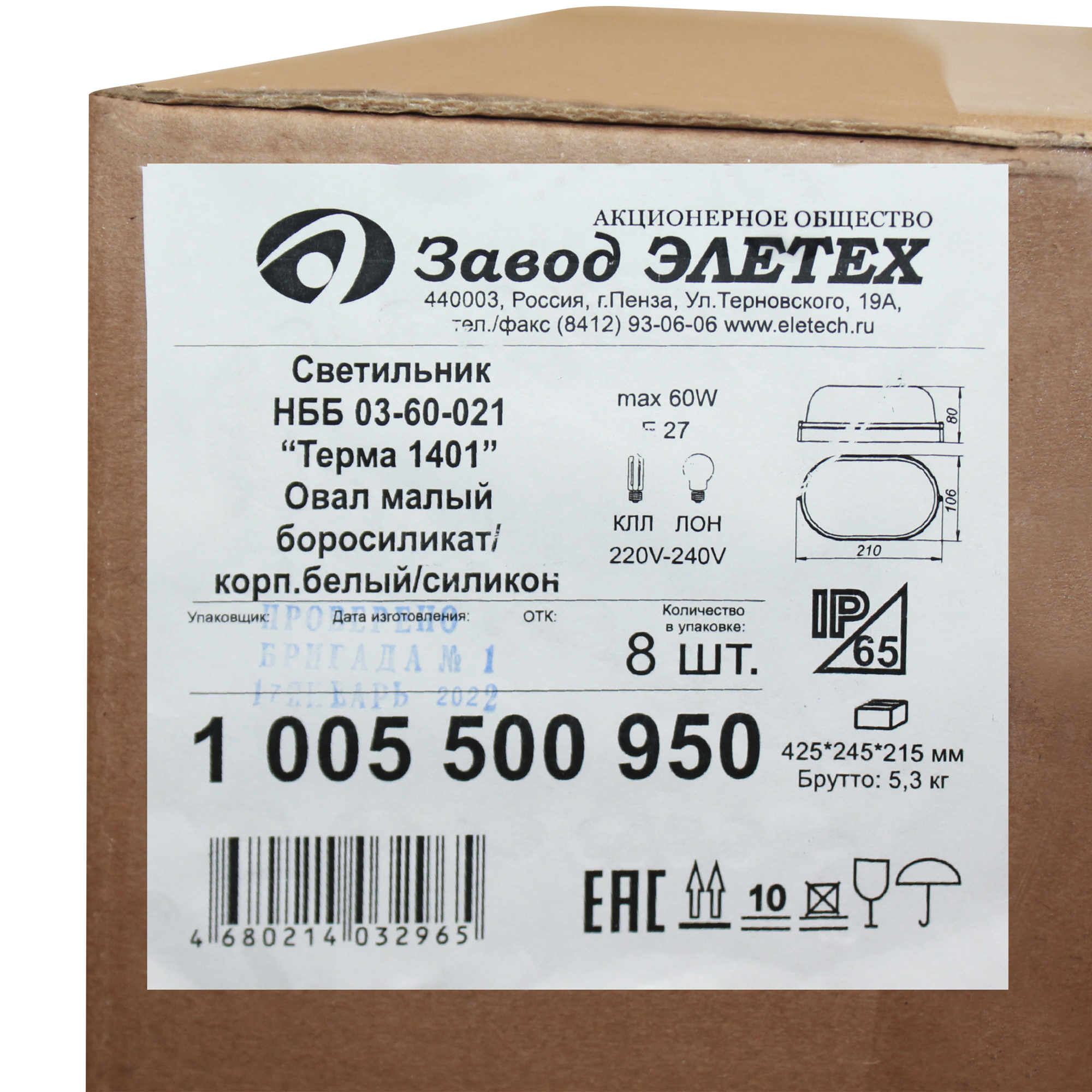 Купить "Настенный светильник Элетех терма 1005500950 IP65 для парной"