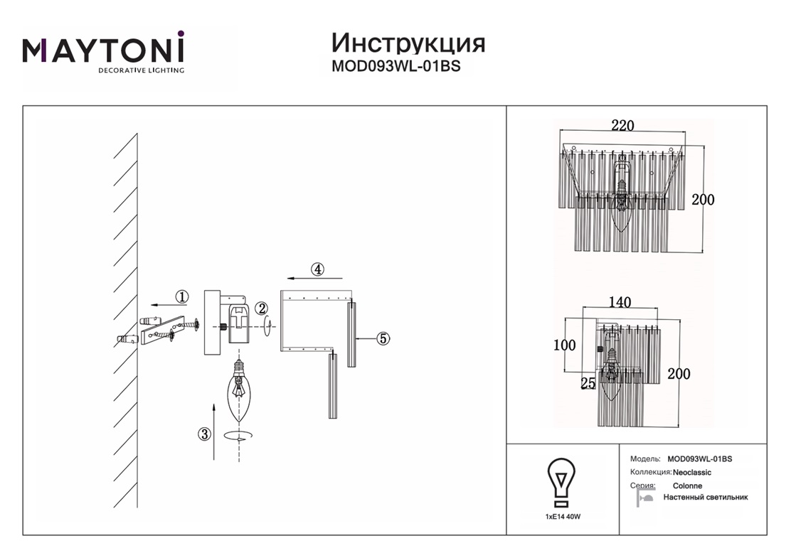 Настенный светильник Maytoni Colonne MOD093WL-01BS — это надёжный и долговечный осветительный прибор, который станет прекрасным дополнением вашего дома и будет радовать вас своим стильным дизайном и функциональностью на протяжении многих лет.