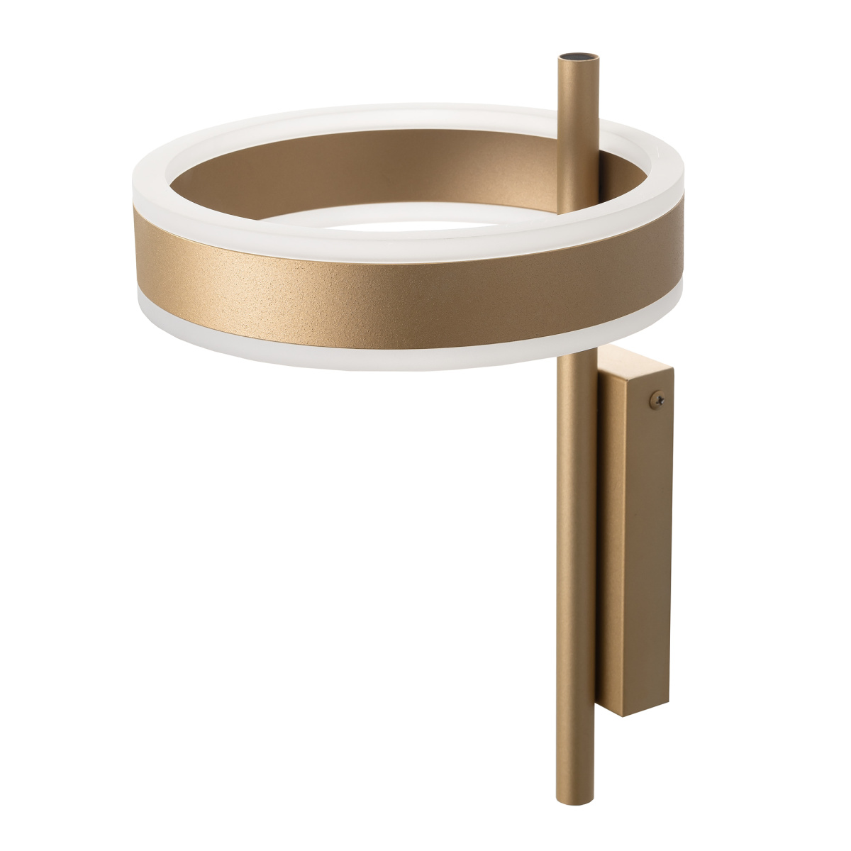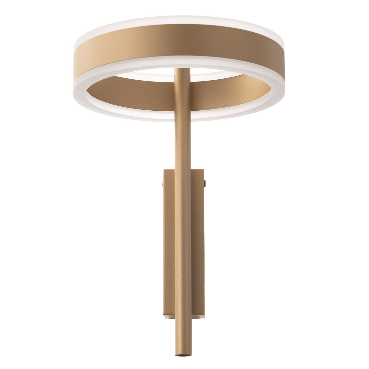 Светодиодный настенный светильник Citilux Дуэт CL719312 является оригинальным представителем современного светодизайна. Корпус светильника металлический, золотого цвета, выполнен в виде кольца размещённом на штанге. Кольцо - светодиодный модуль, изготовлен из алюминиевого профиля благородного золотого цвета, рассеиватель из оптического полимера. Наличие источников света с двух сторон профиля позволяет равномерно осветить всё помещение.