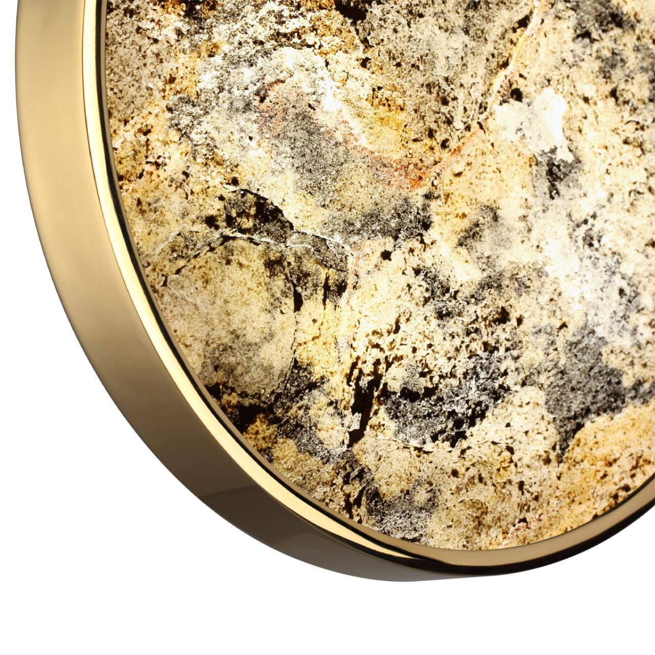 Наряду с моделями с лампой Е27 в линии Bergi есть светодиодные светильники — настенно-потолочные светильники диаметром 300,400,500,600мм, бра, подвес с рассеивателем из натурального природного материала — stone flake — в переводе «каменные хлопья». Тончайший срез (слой) каменной породы наносится на пластиковую подложку для придания формы плафону. Уникальность этого материала в том, что сохраняется красивая природная структура камня с ее неровностями и наслоениями, поэтому поверхность слегка шероховатая. В разных цветовых температурах LED цвет плафона имеет разный оттенок и каждый может выбрать ту цветовую температуру, которая подходит для интерьера. Для удобства выбора цветовой температуры в светильниках есть переключатель с выбором 3000К–4000К–6000К. Светодиодный подвес линии Bergi оснащен шарниром, который позволяет фиксировать различный наклон плафона и создавать красивые композиции.Глянцевый отблеск золотого цвета арматуры придает особый шик коллекции Bergi gold и позволяет разместить светильники в люкс