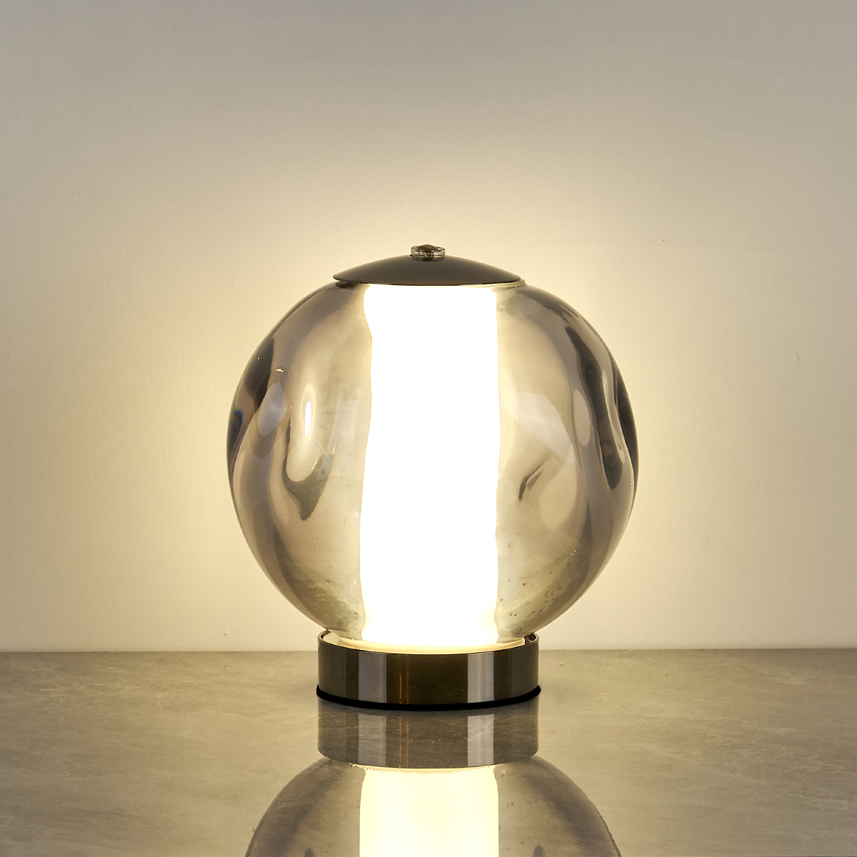 Настольная лампа Delight Collection OT2437-Z pearl black/smoke с плафоном из стекла дымчатого цвета. Внутри плафона рассеиватель из белого акрила. Диаметр плафона 12 см. Основание светильника из металла черного цвета.