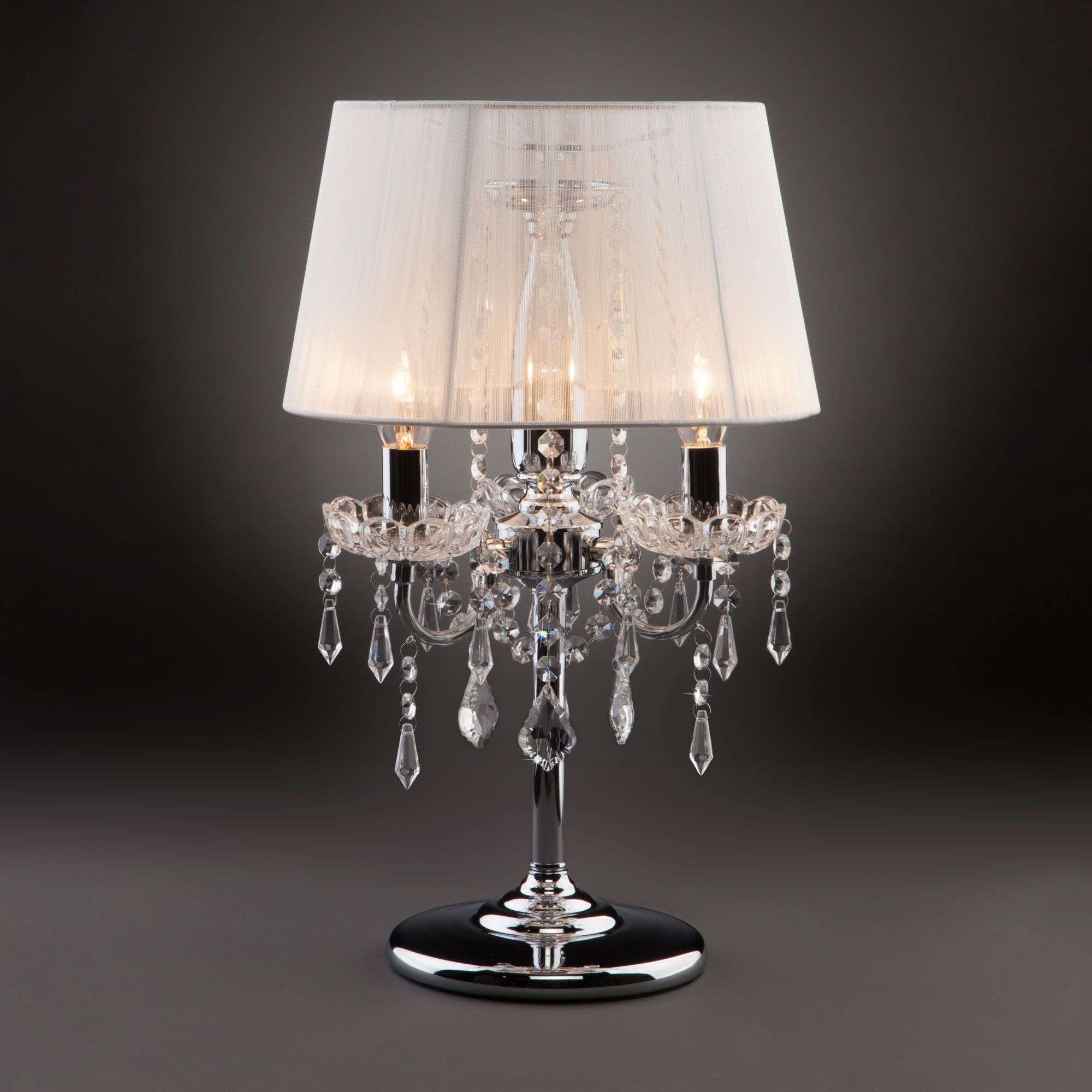 Благодаря белому тканевому абажуру настольная лампа создает мягкое рассеянное свечение, подходящее для комфортного чтения книг в вечернее время. Прочный металлический корпус светильника устойчив к механическим воздействиям, а защитное покрытие обеспечивает надежную электроизоляцию и презентабельный внешний вид. Лампа украшена декоративным хрусталем, выполненным из особого стекла с эффектной огранкой.
