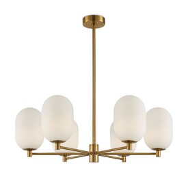 Арматура из металла цвета латуни. Плафоны овальной формы из белого матового стекла. Форма плафонов дает рассеянный свет, максимальная пропускная способность. Источник света лампа. Цоколь G9. Широкая линейка позволяет организовать комплексное освещение в едином стиле.