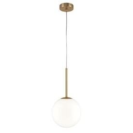 Материал арматуры – металл, цвет - золото, белый, черный. Округлые плафоны из матового белого стекла. Универсальные формы, минималистичный дизайн. Цоколь - E14. Лампы не входят в комплект. Регулируемая высота подвесных светильников.