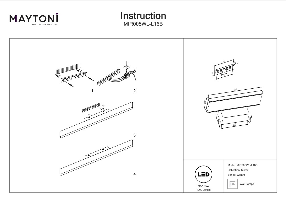 Купить "Подсветка для зеркал Maytoni Gleam MIR005WL-L16B"