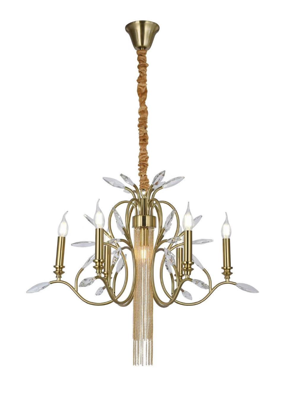 Светодиодные и лампы накаливания с цоколем Е14 обеспечат яркое и комфортное освещение, количество ламп 8. Высота люстры составляет 1240 мм, диаметр 800 мм, а площадь освещения от 15 до 20 кв.м обеспечит равномерное освещение на большой площади.