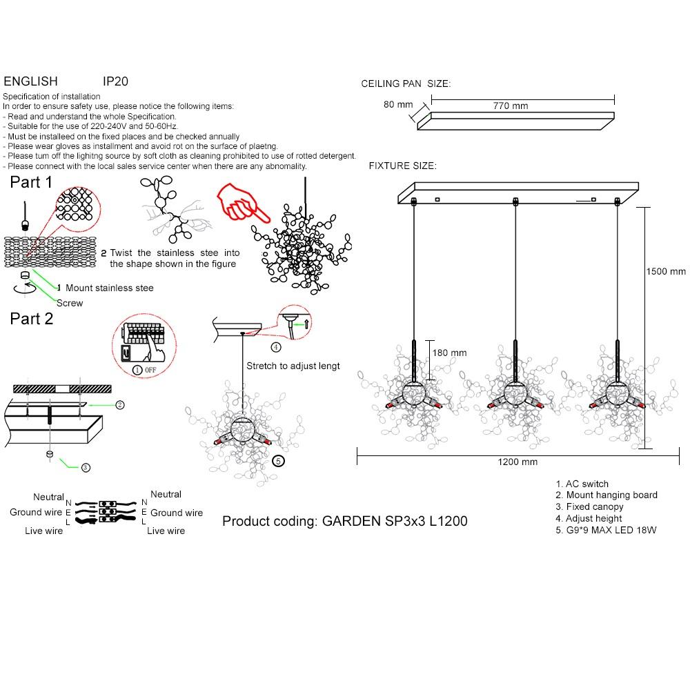 Купить "Подвесная люстра Crystal Lux GARDEN SP3х3 L1200 CHROME"