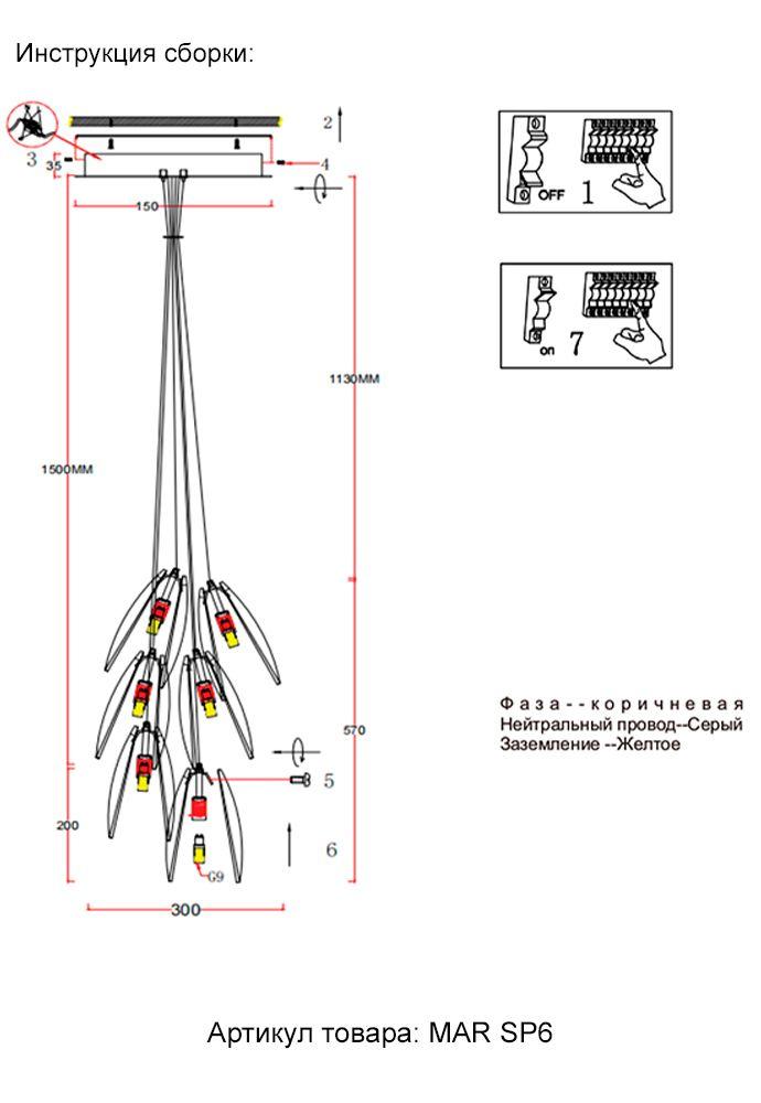 Подвесная люстра Crystal Lux Mar SP6 Transparente в Магнитогорске