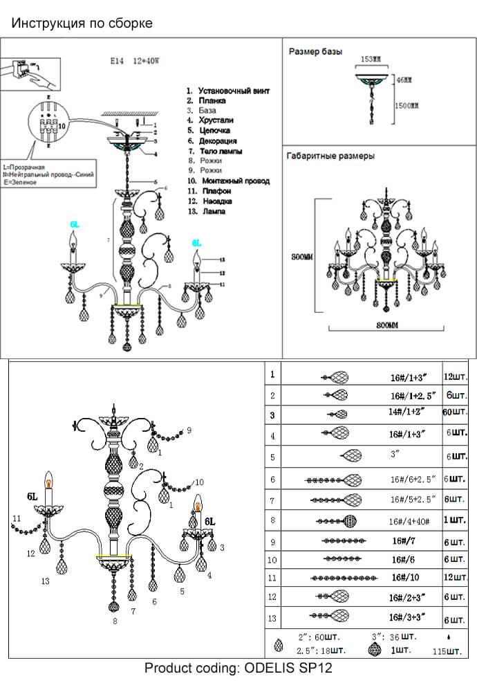 - Цвет плафонов: Прозрачный