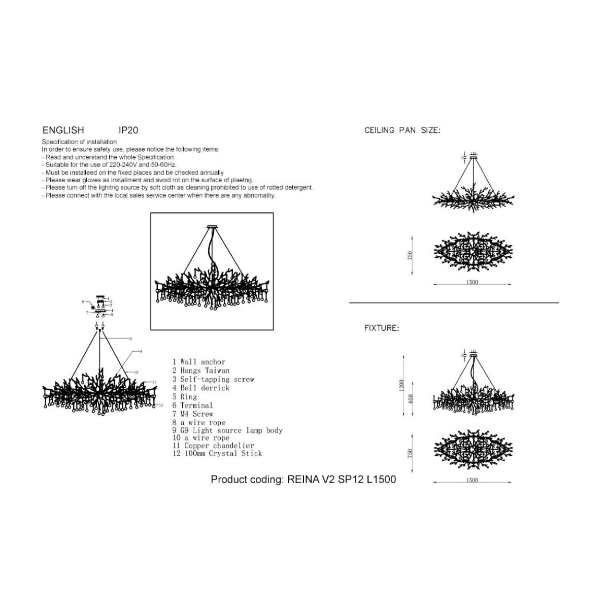 Купить "Подвесная люстра Crystal Lux REINA V2 SP12 L1500 SILVER PATINA"