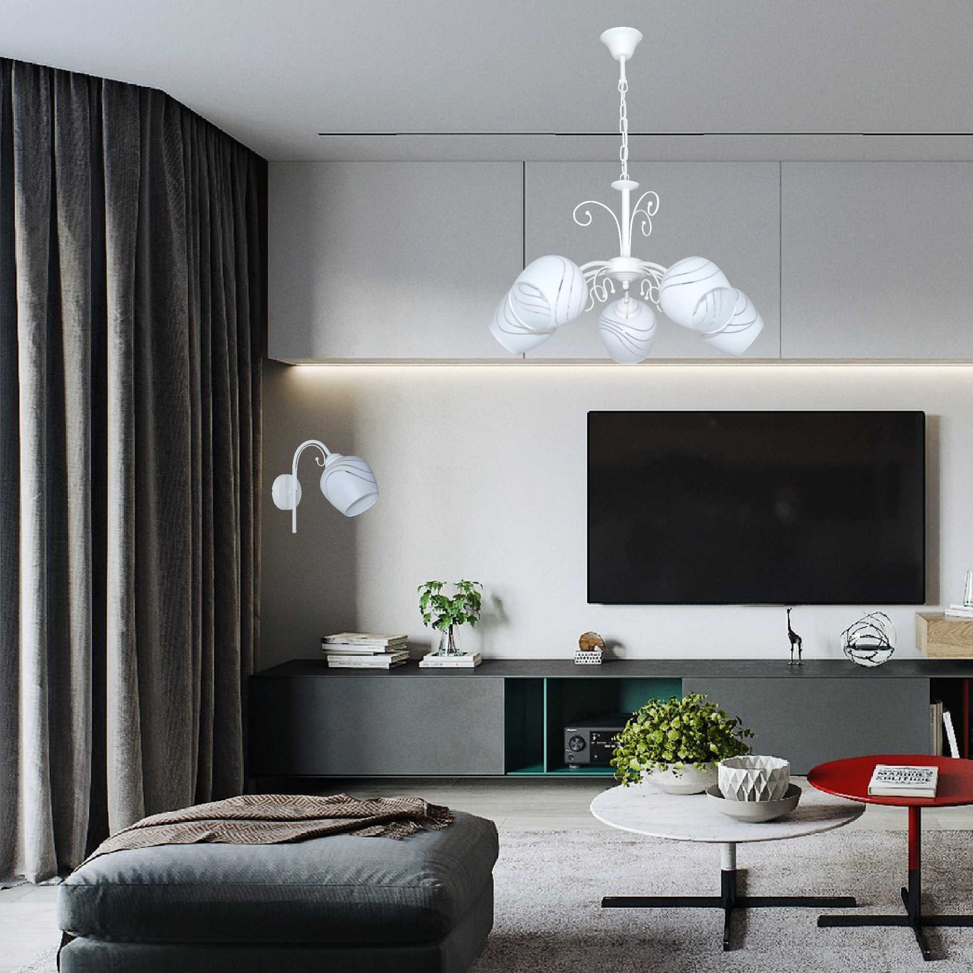 - Цвет плафонов: Белый