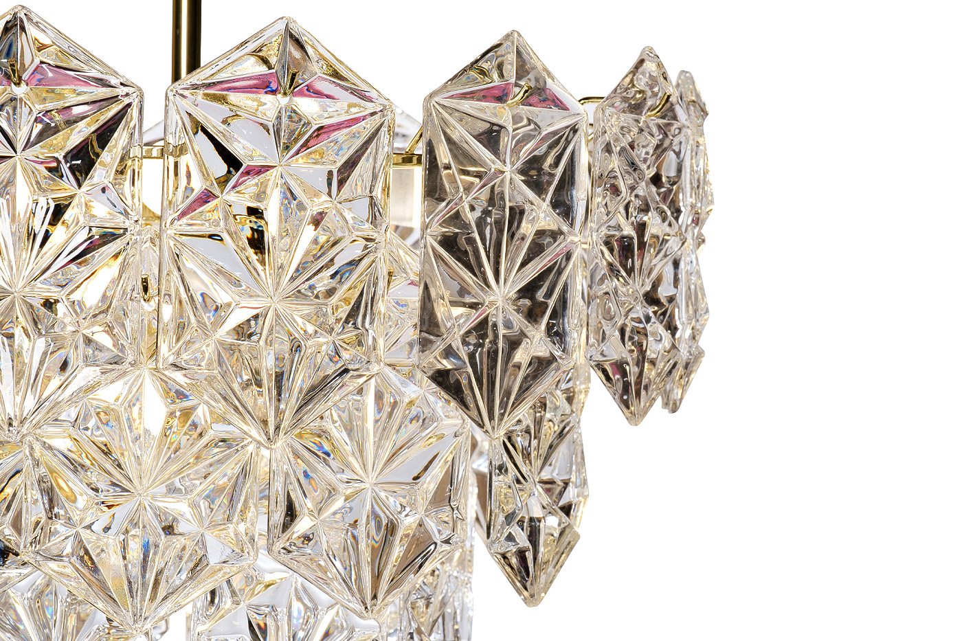 овременная потолочная люстра TENDER в стиле ар-деко выполнена из множества стеклянных элементов в виде кристаллов, которые преломляют свет и создают бесподобный эффект мягкого сияния. Визуально дизайнерская люстра с подвесками напоминает купол, который скрывает лампы и мягко рассеивает свет, создавая уютную атмосферу в помещении. Данная модель легко справляется со своими основными функциями и декоративными задачами за счет блеска латуни и легкости стекла. Если вам нужна красивая, надежная стеклянная люстра, дизайн которой будет актуальным годами, обратите внимание на TENDER. Эстетика и качество в этом светильнике – на высоте! Рекомендованная площадь освещения - 16-22 м2