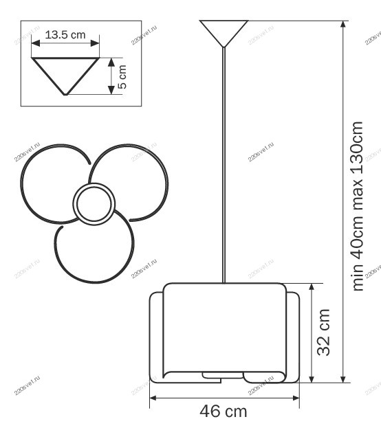 - Количество ламп: 3 шт