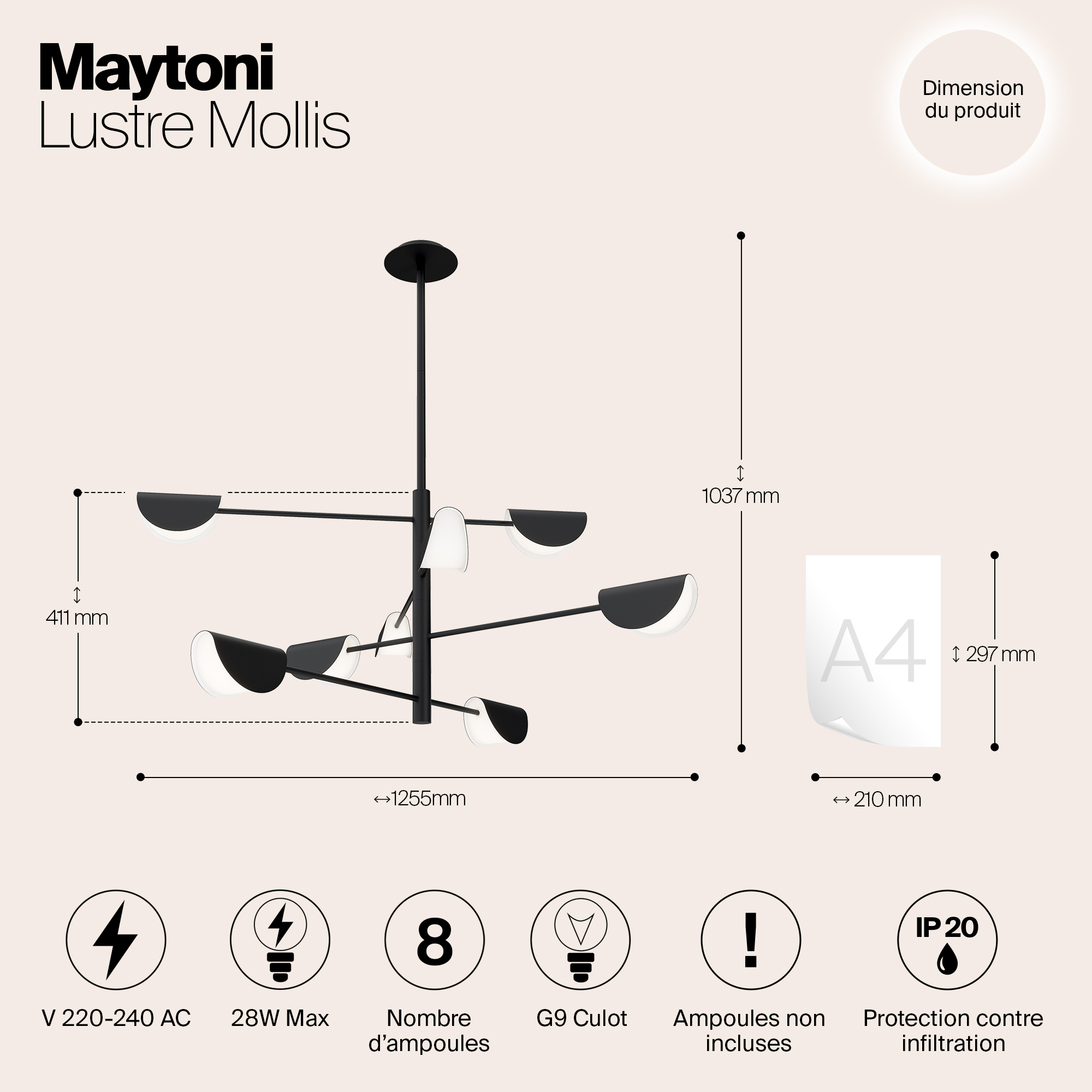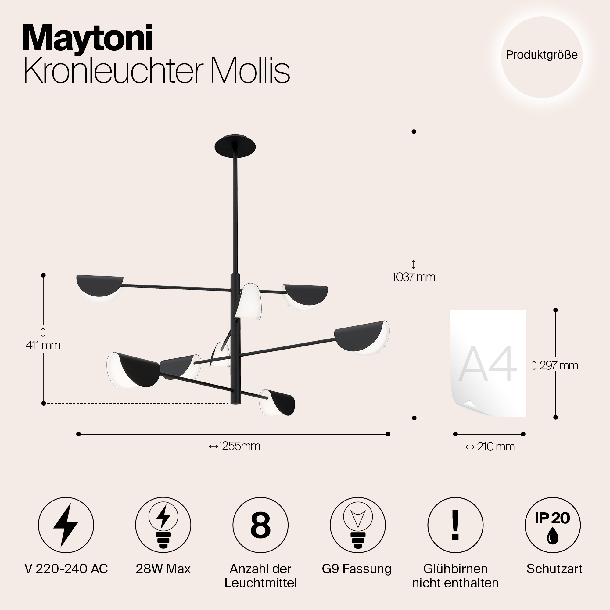 - Количество ламп: 8 шт