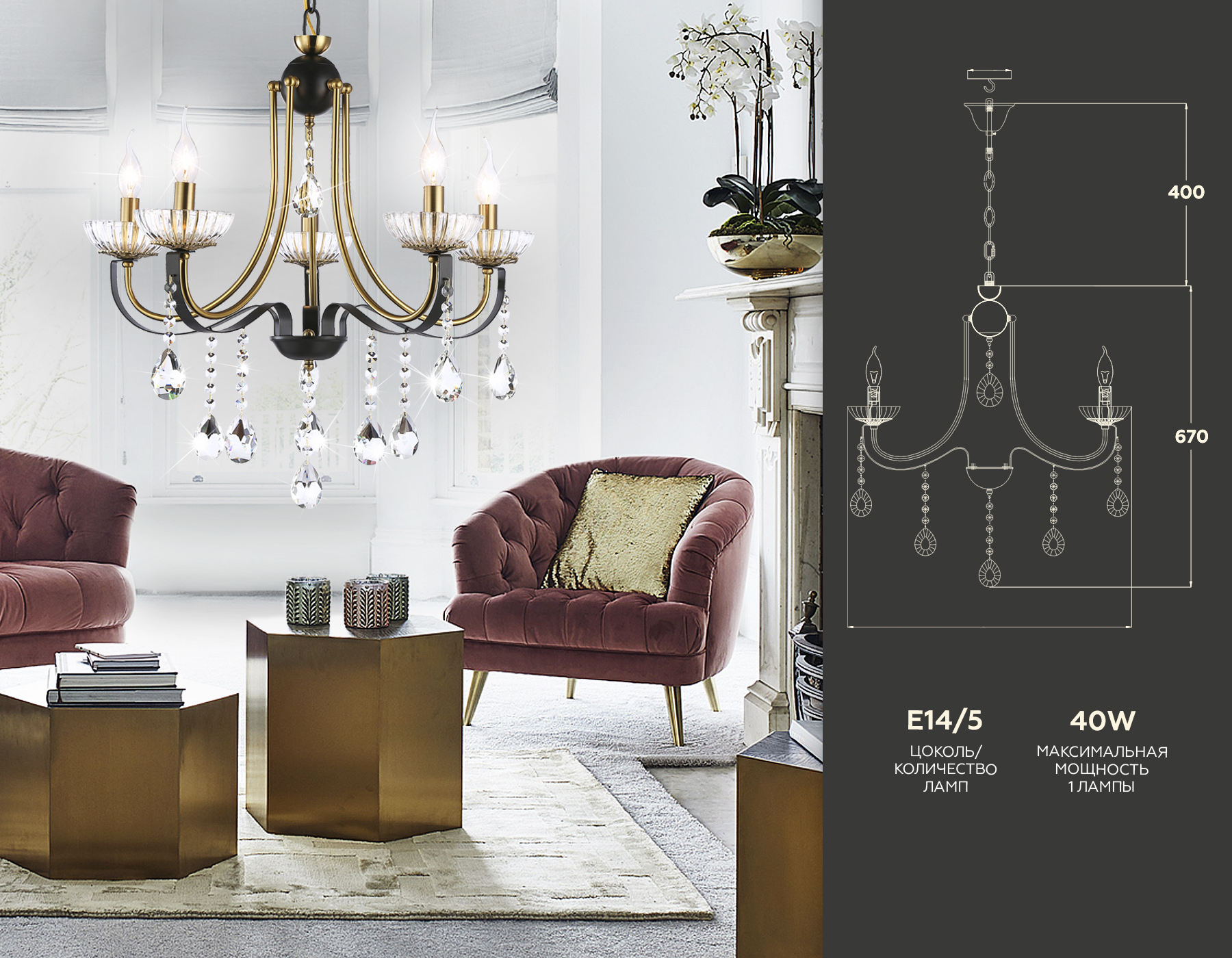 - Количество ламп: 5 шт