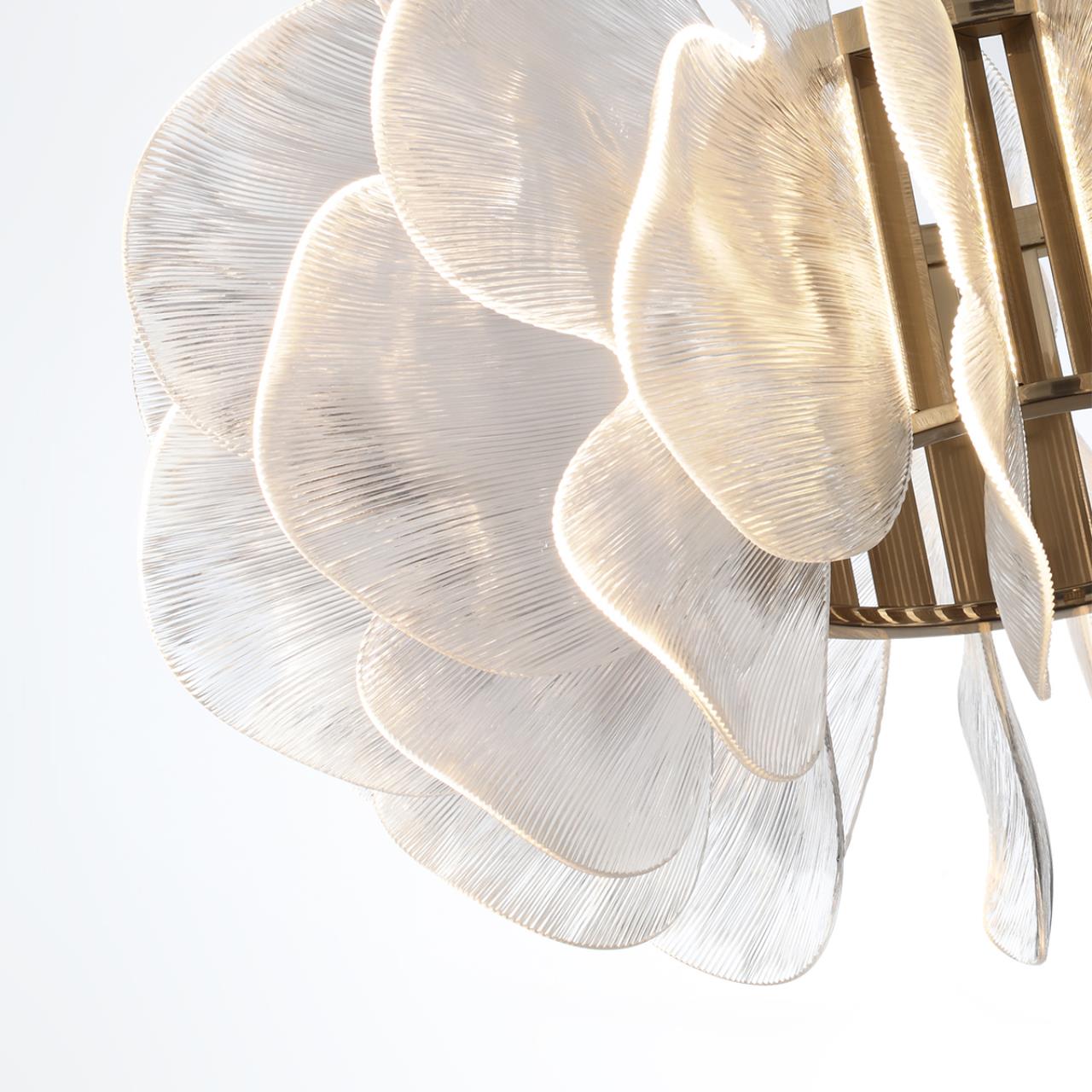 Линия Siama ― это роскошные люстры с большими волнообразными рассеивателями из рифленого прозрачного акрила, которые напоминают то ли лепестки крупного пиона, то ли шикарные огромные плавники рыбки betta, прославившейся своей необыкновенной красотой среди обитателей моря. Светодиодный источник света комфортной цветовой температуры 3500К подсвечивает «лепестки» люстр и настенного светильника линии Siama и притягивает внимание волшебством сочетания природы и технического прогресса.