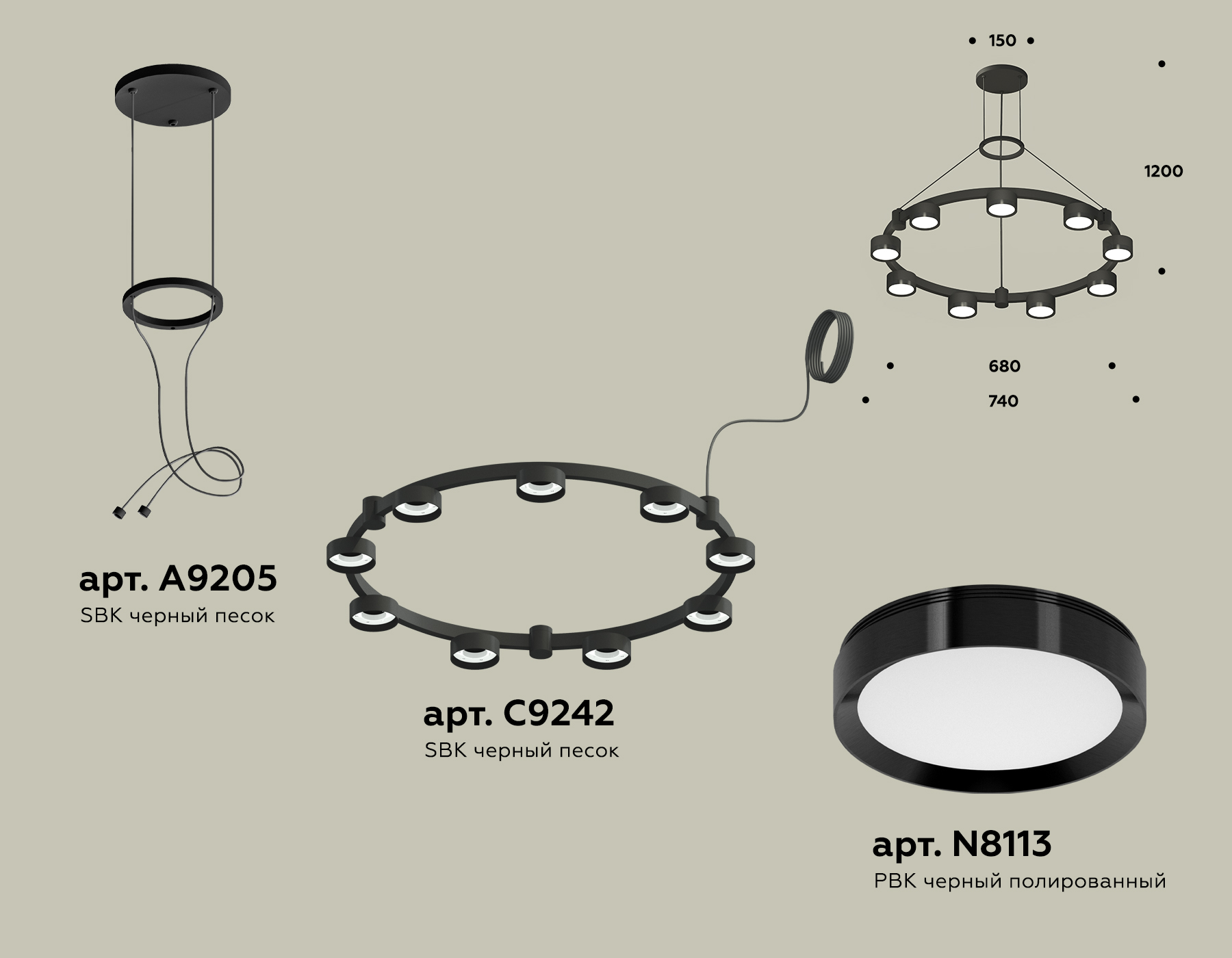 - Цвет плафонов: Черный