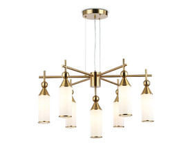 Подвесной светильник из коллекции HIGH LIGHT. Модель LH55272 представлена в стиле модерн. Люстра выполнена из стеклянных белых матовых плафонов и металлического каркаса цвета латунь. Для данной модели подойдут лампы с цоколем Е14. Светильник будет прекрасным дополнением в любом помещении.