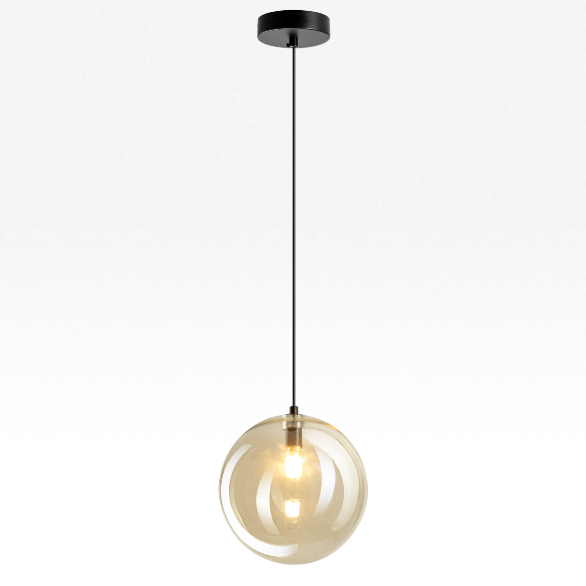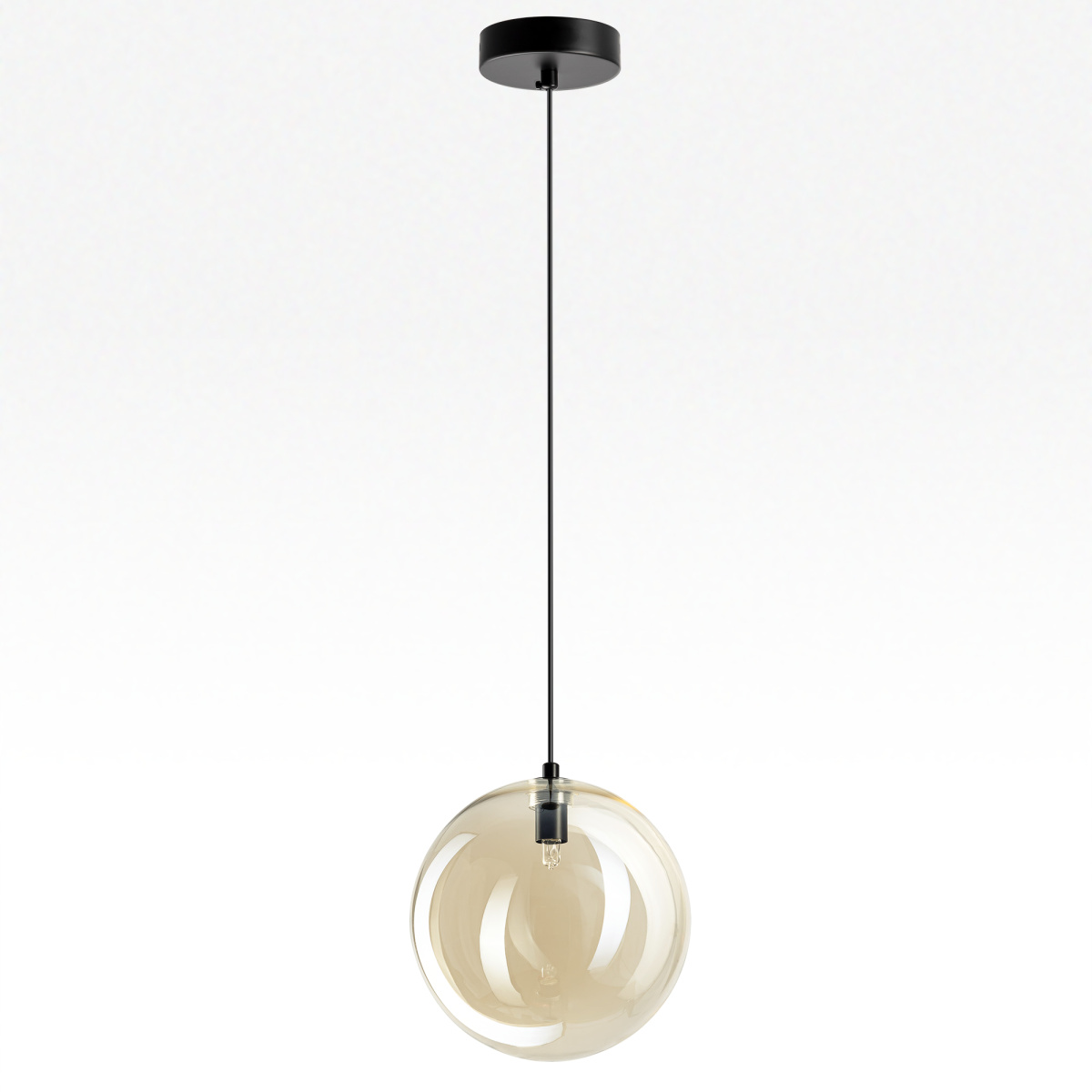 Современный подвесной светильник Citilux ORTON CL202022 представляет собой гармоничное сочетание правильных геометрических форм и воздушной лёгкости. Прозрачный стеклянный шар с золотистым оттенком шампань, подвешенный на чёрном матовом металлическом основании, выглядит эффектно при любом освещении.