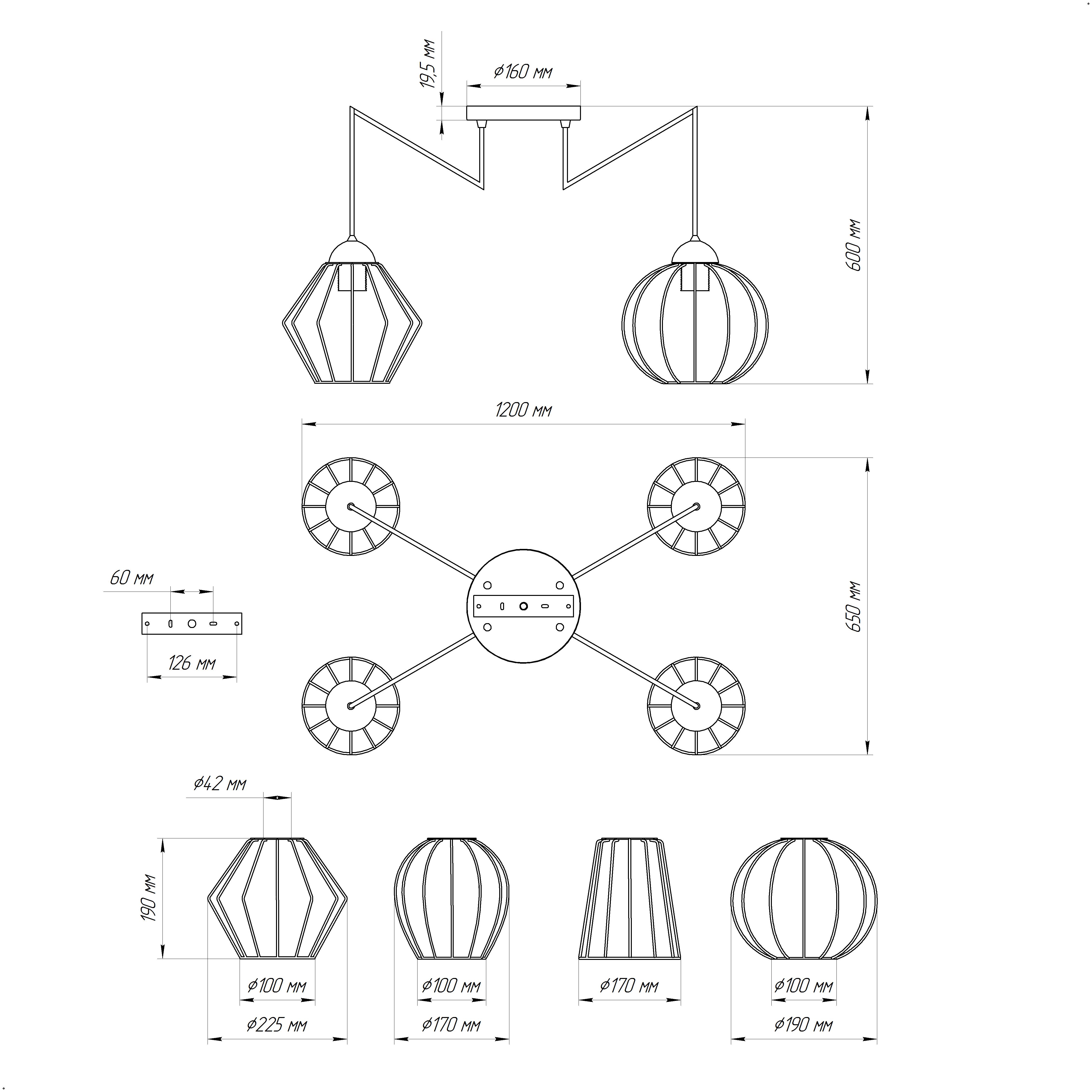- Цвет плафонов: Черный