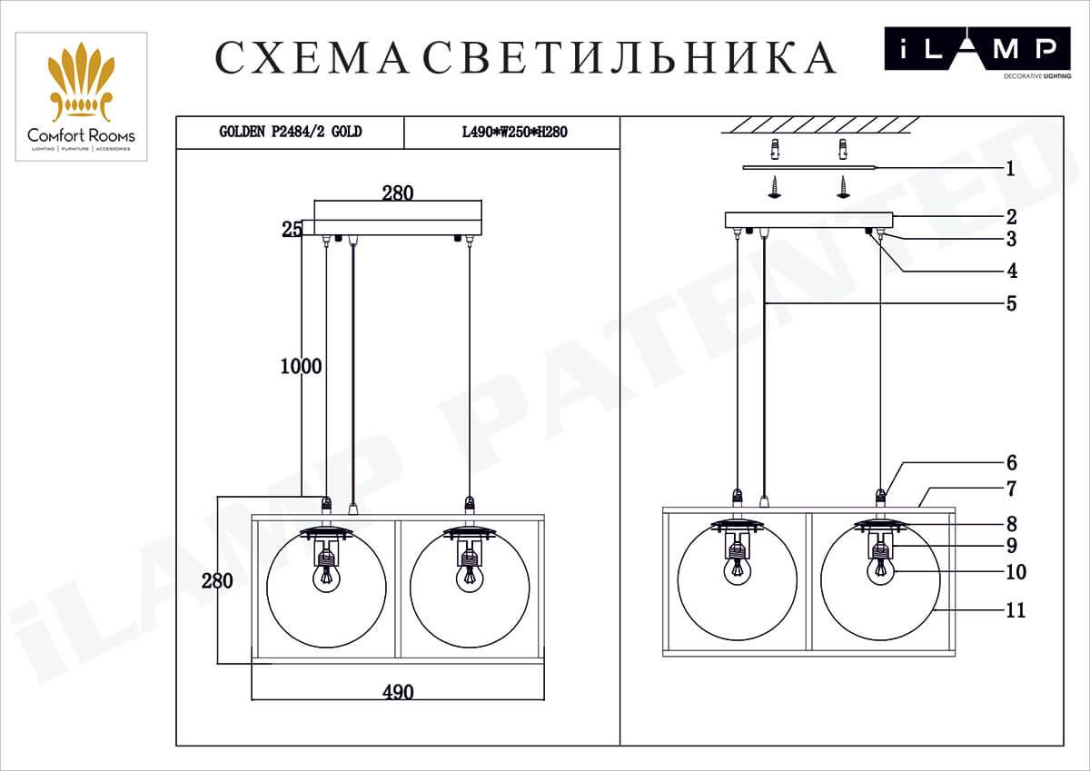 Купить "Подвесной светильник iLamp Golden P2484-2 GOLD"