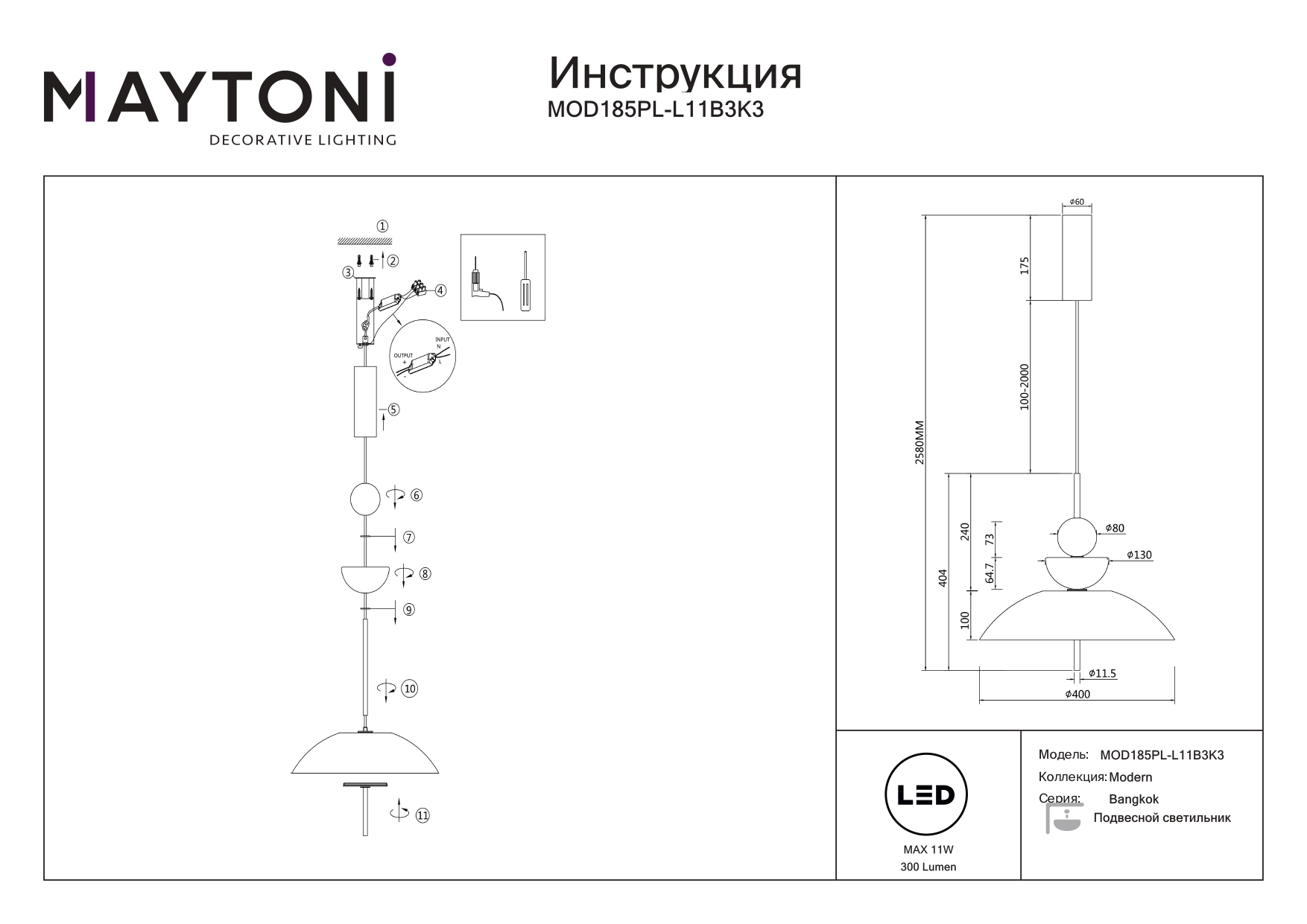 Данную модель MOD185PL-L11B3K3 с быстрой доставкой спешите купить по цене 31 990 ₽ в магазине 220svet.ru