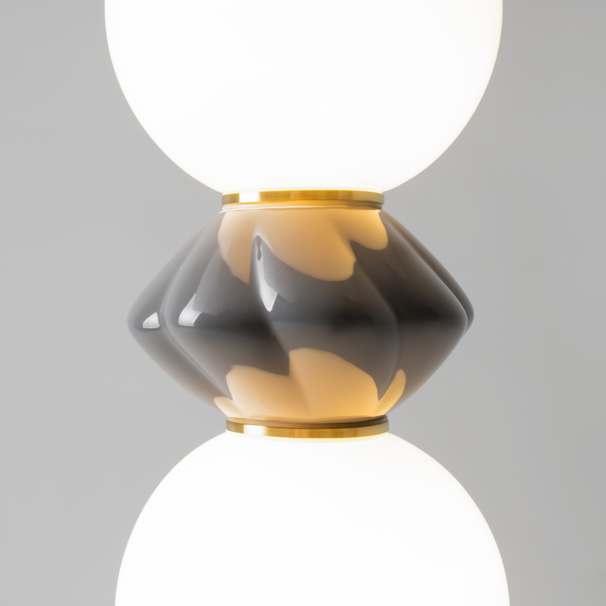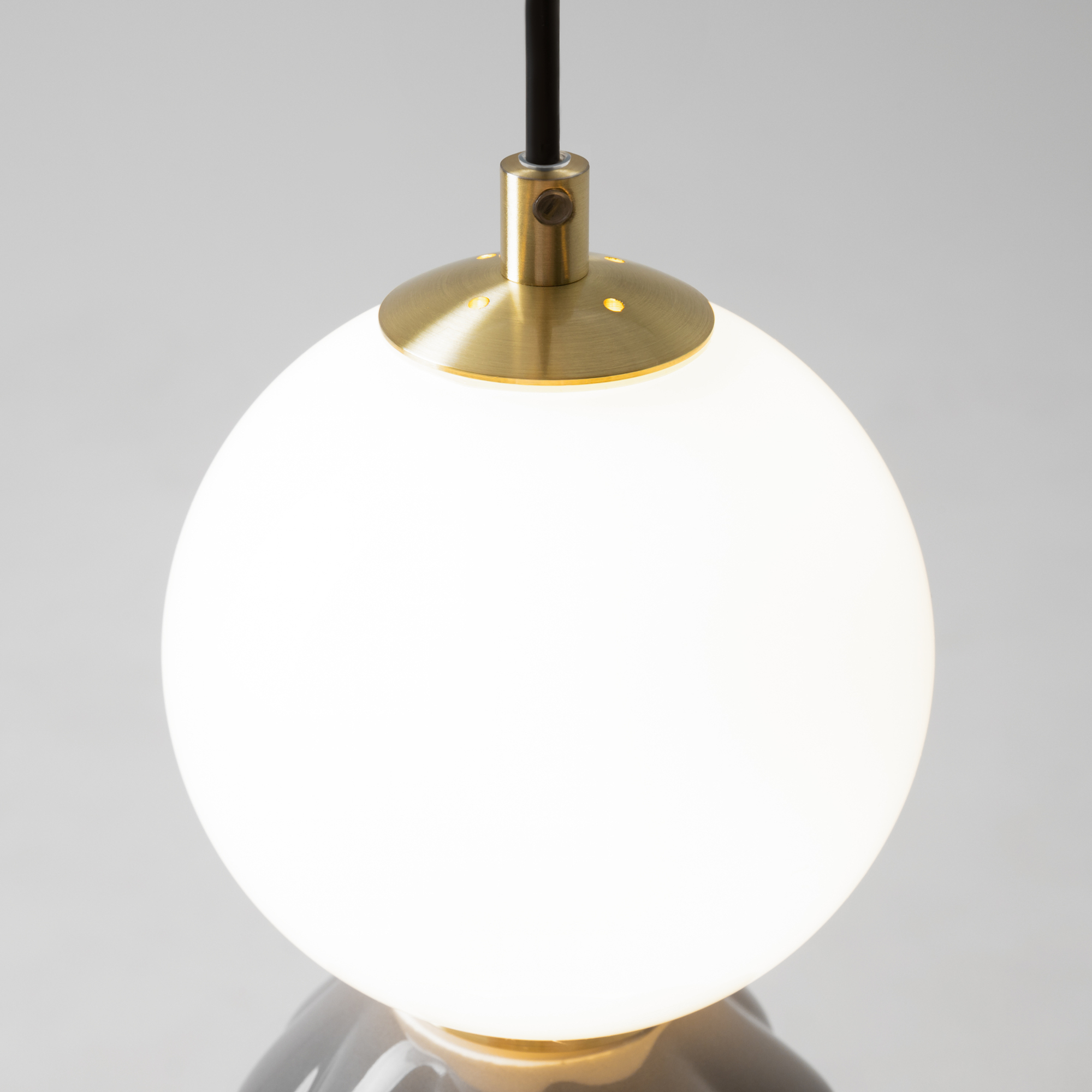 Светильники Brosche подобно броши завершают образ интерьера. В серии представлены подвесные светильники, бра и настольная лампа. Декоративная керамическая бусина покрыта глазурью: кремово-белая (RAL 9001) или серебристо-серая (RAL 7001). Металлическая арматура цвета сатинированной латуни; белые плафоны из глянцевого стекла. Мягкое рассеивание света (3000K) от встроенного LED-источника привносит уют. Светильники Brosche подходят для зонирования пространства в спальнях, гостиных и столовых. Данную модель MOD362PL-L10GR3K спешите купить в магазине 220svet.ru