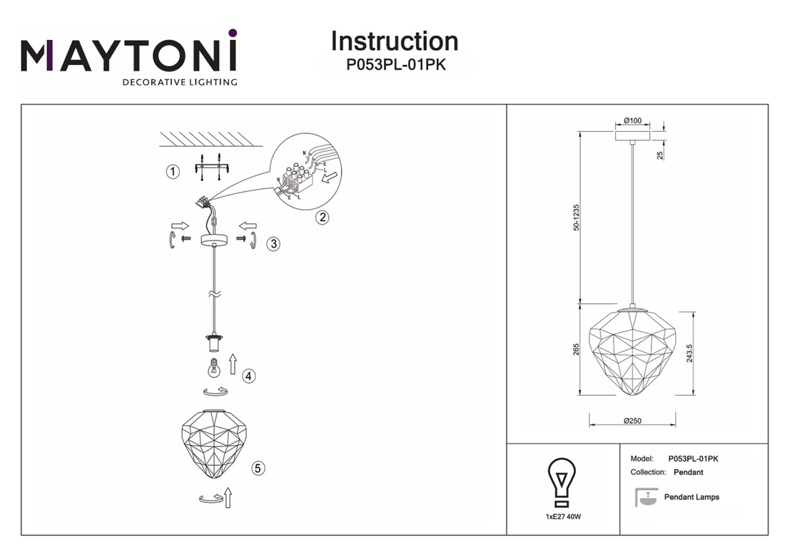 Купить "Подвесной светильник Maytoni Globo P053PL-01PK"